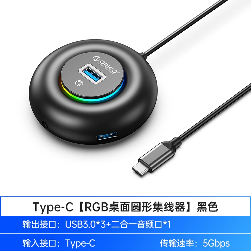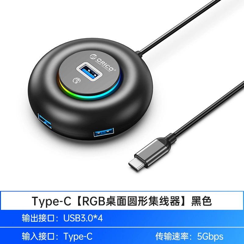 Orico USB Hub Multi-Port Rgb Docking Station Extension Cable Splitter Converter Adapter Type-C Laptop External USB Drive One-To-Four Interface Adapter Hub