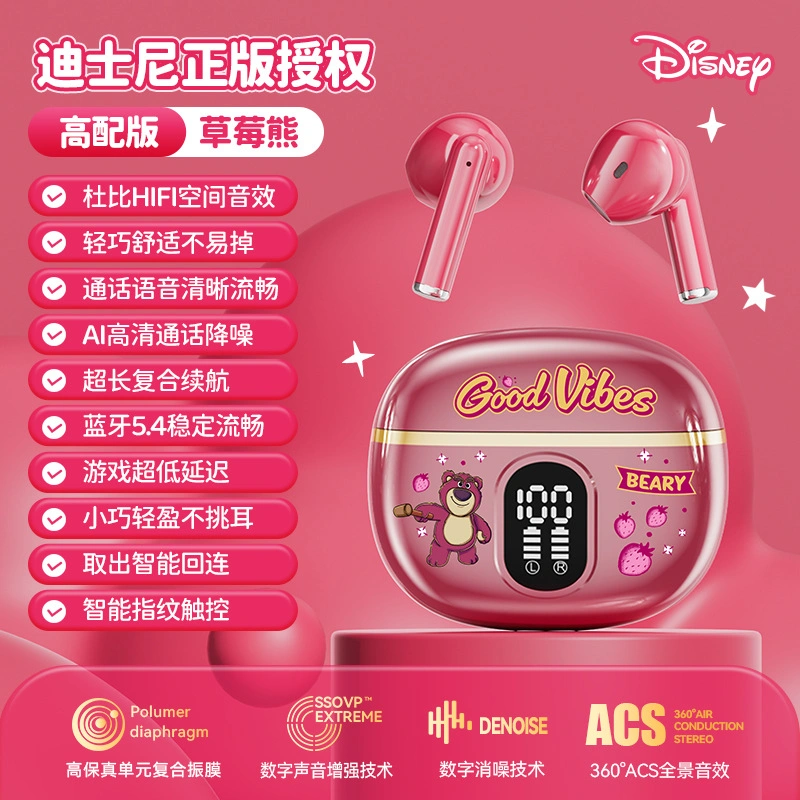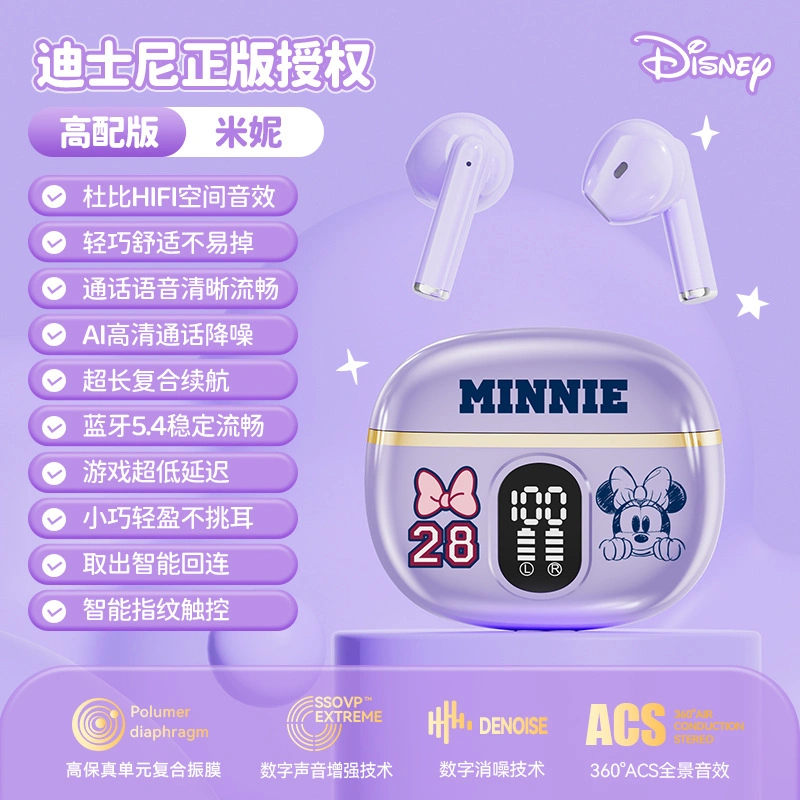 Disney Wireless Bluetooth Headphones, In-Ear Noise-Cancelling, Genuine Co-Branded Mini Invisible Small High-Value Design for Girls