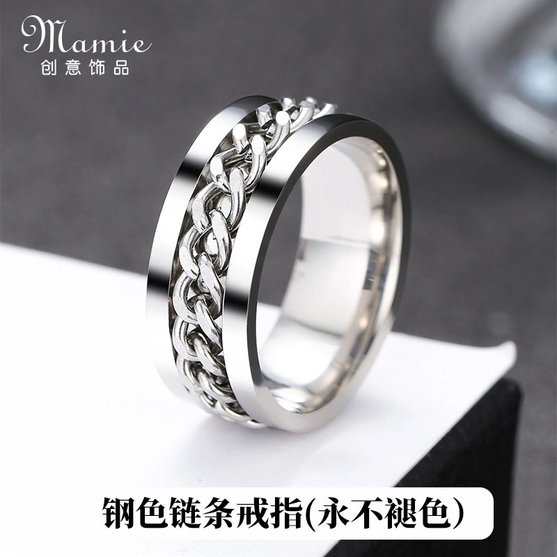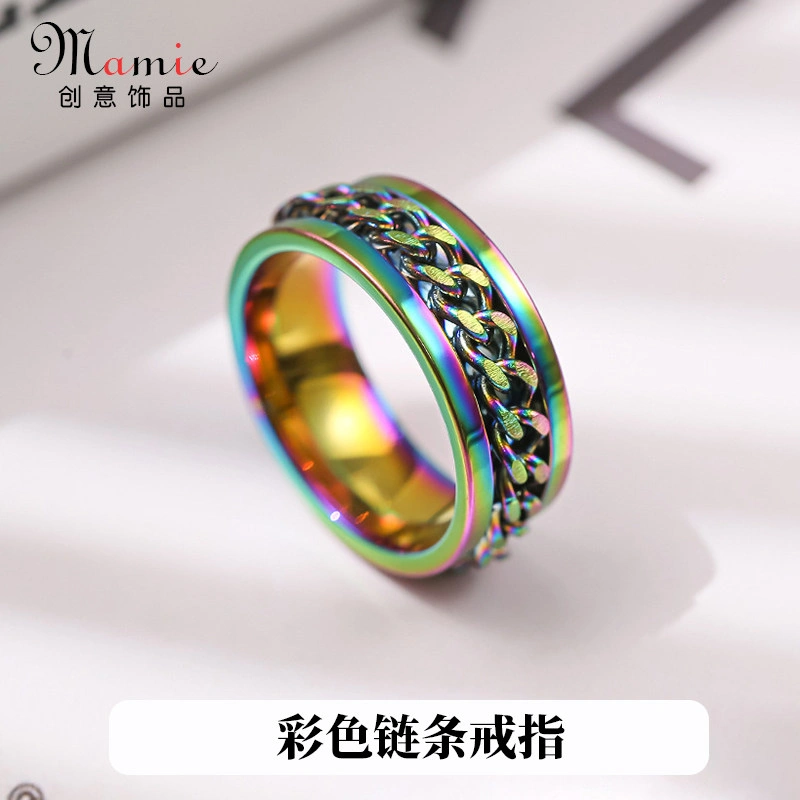 Personalized Men's and Women's Non-Fading ins Trendy Chain Retro Rotating Ring That Can Open Beer, Hip-Hop Titanium Steel Ring