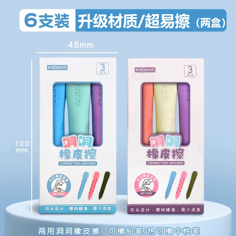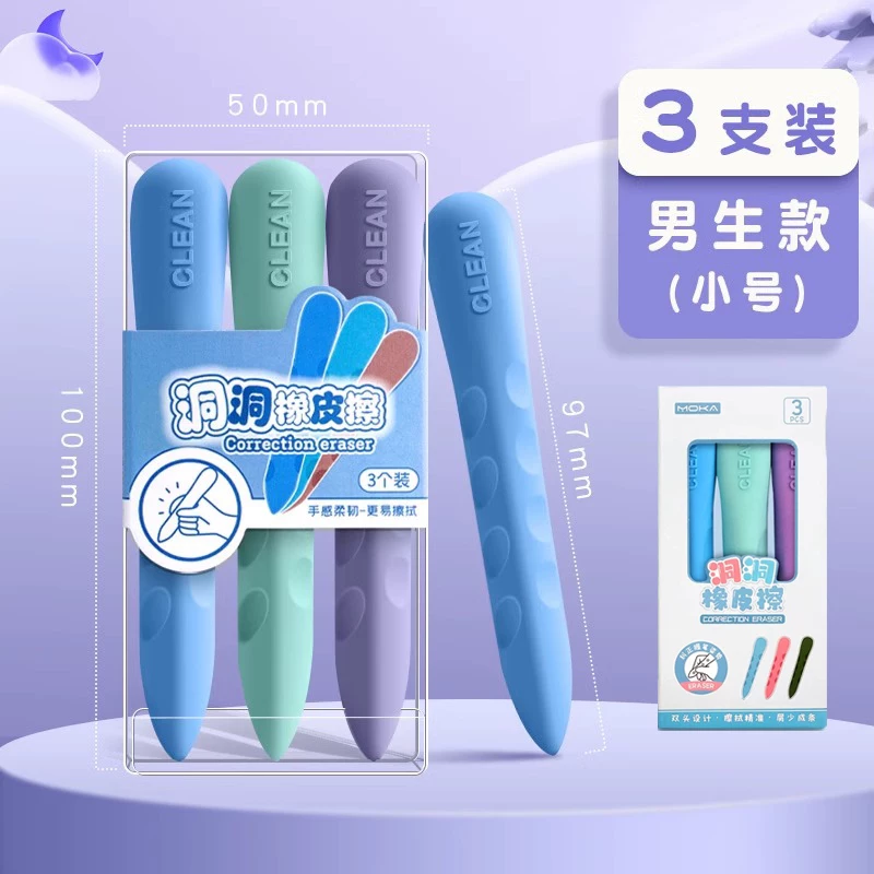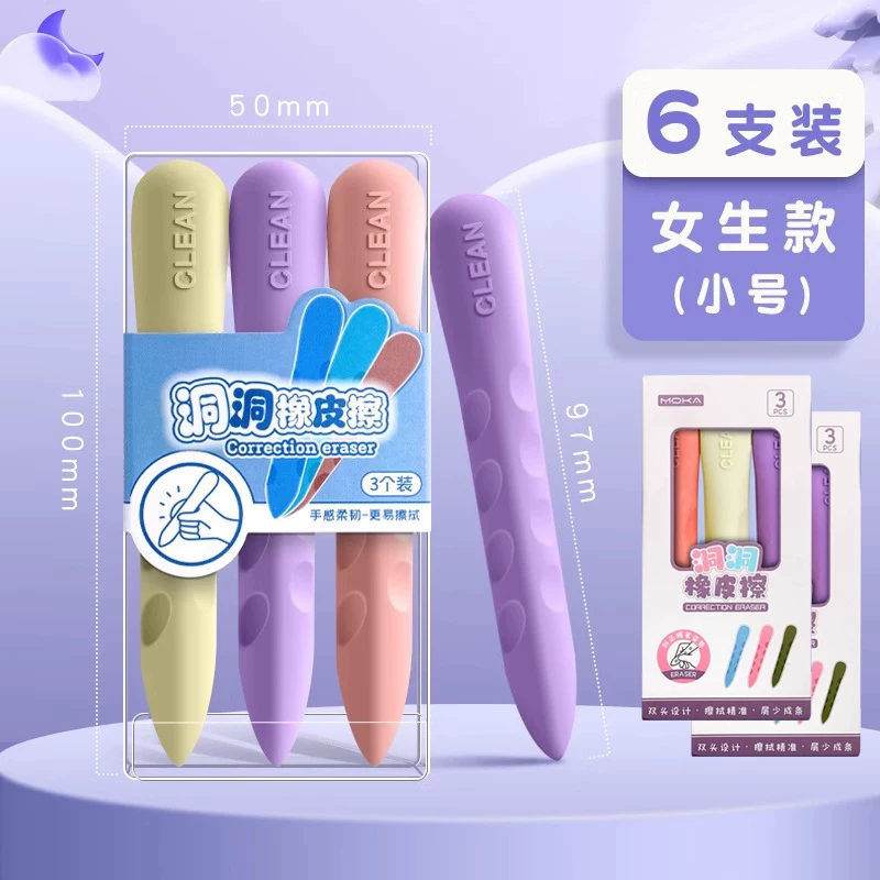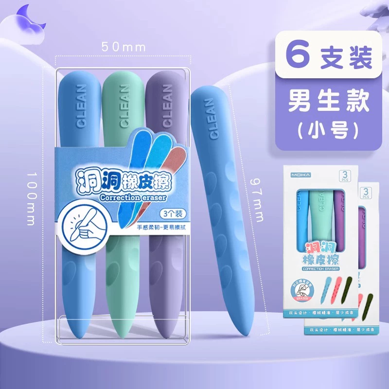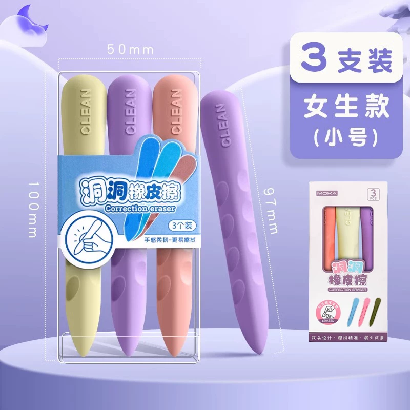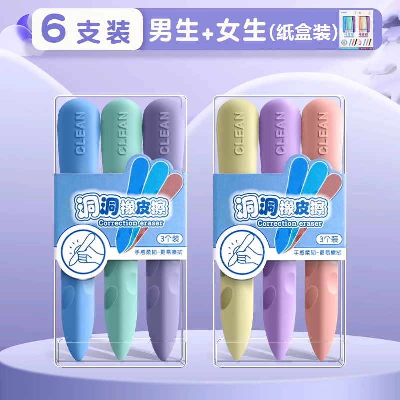 Extra-Large Hole-Punched Eraser for Elementary School Students, Pen-Shaped, No Debris, No Residue, Children's Posture-Correcting Creative Pencil Eraser