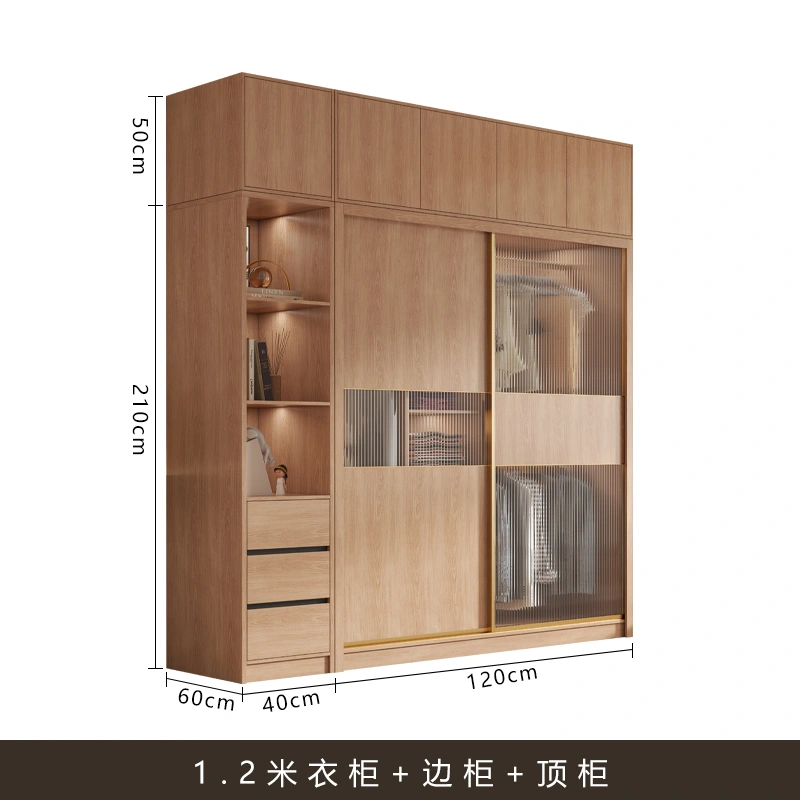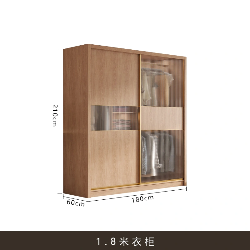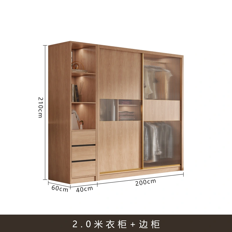 Nordic Sliding Door Wardrobe for Home Bedroom, Light Luxury Modern Minimalist Sliding Door Wooden Cabinet, Overall Small Apartment Wardrobe