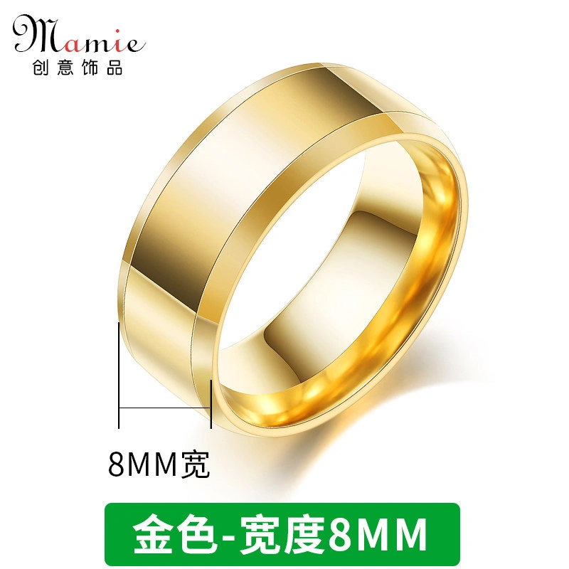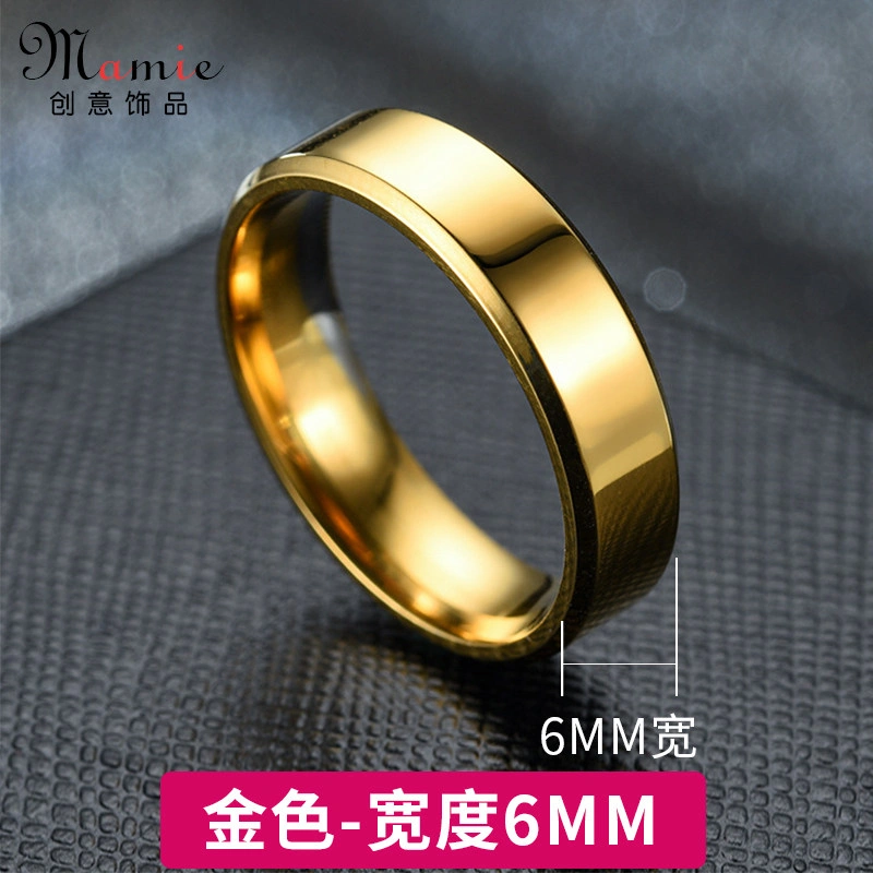 Glossy Double Beveled Non-Fading Ring for Men, Simple Women's Ring, Vintage Titanium Steel 18K Gold Couple Ring
