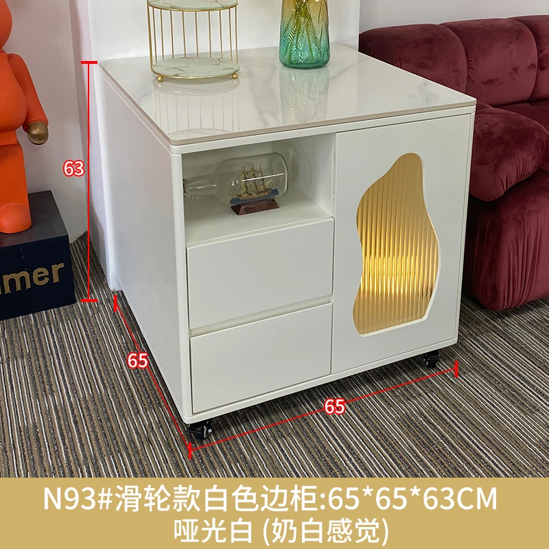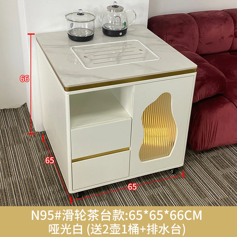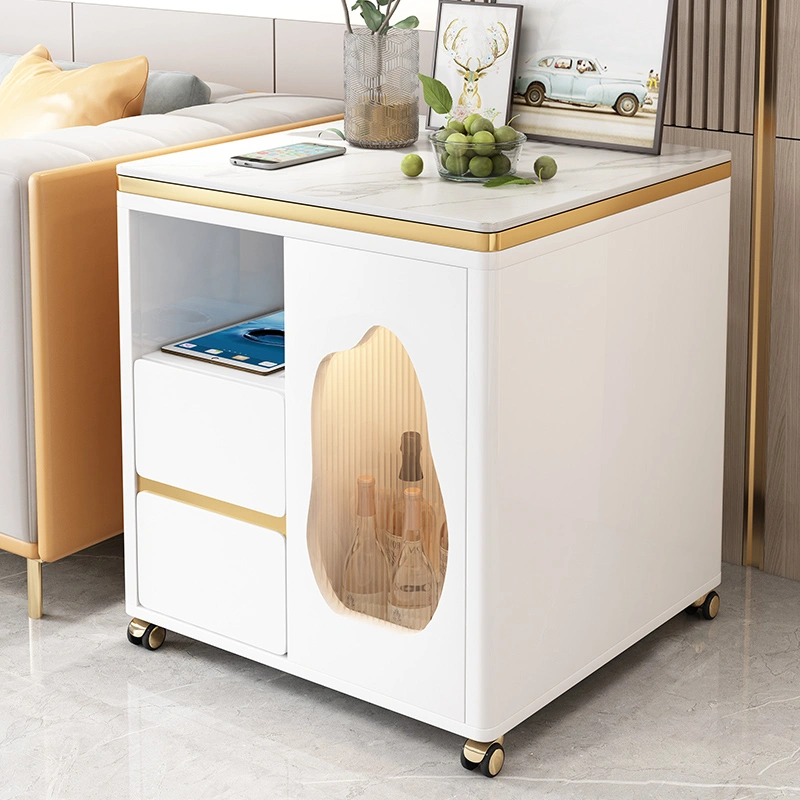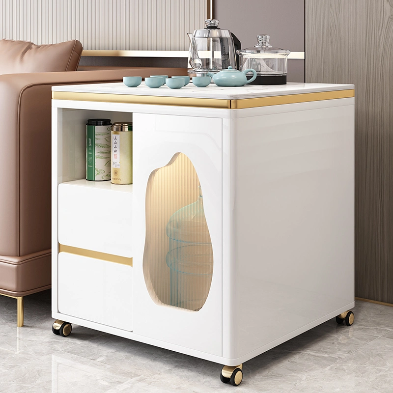 Light Luxury Tea Bar Cabinet Boiling Water Coffee Table Household Large Corner Table Square Coffee Table 65 White Sofa Side Table Cabinet Mobile