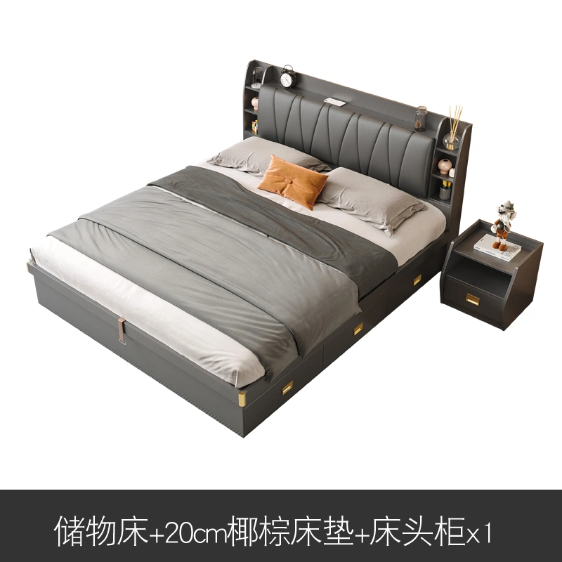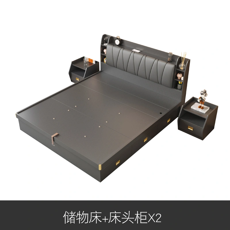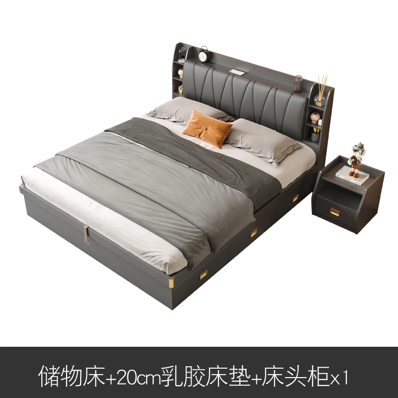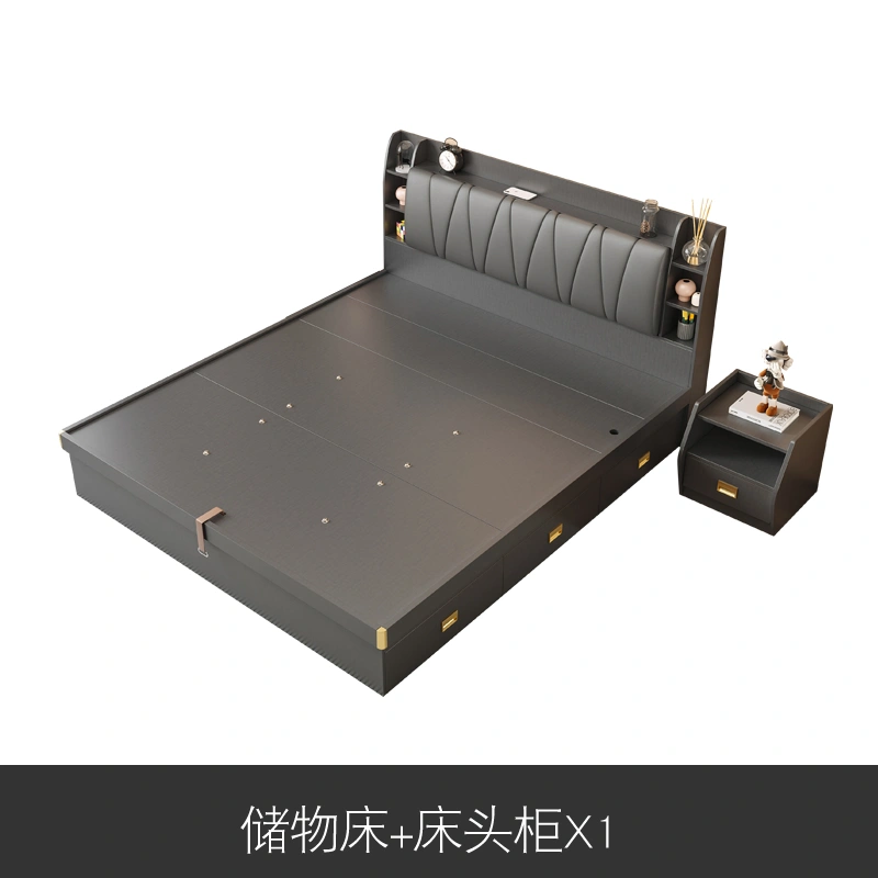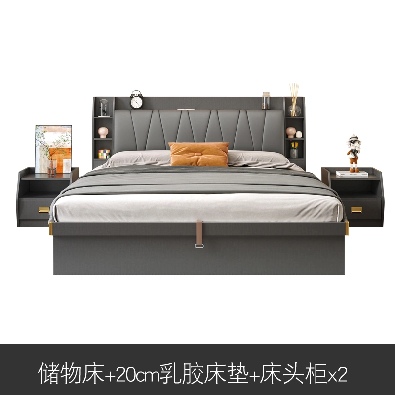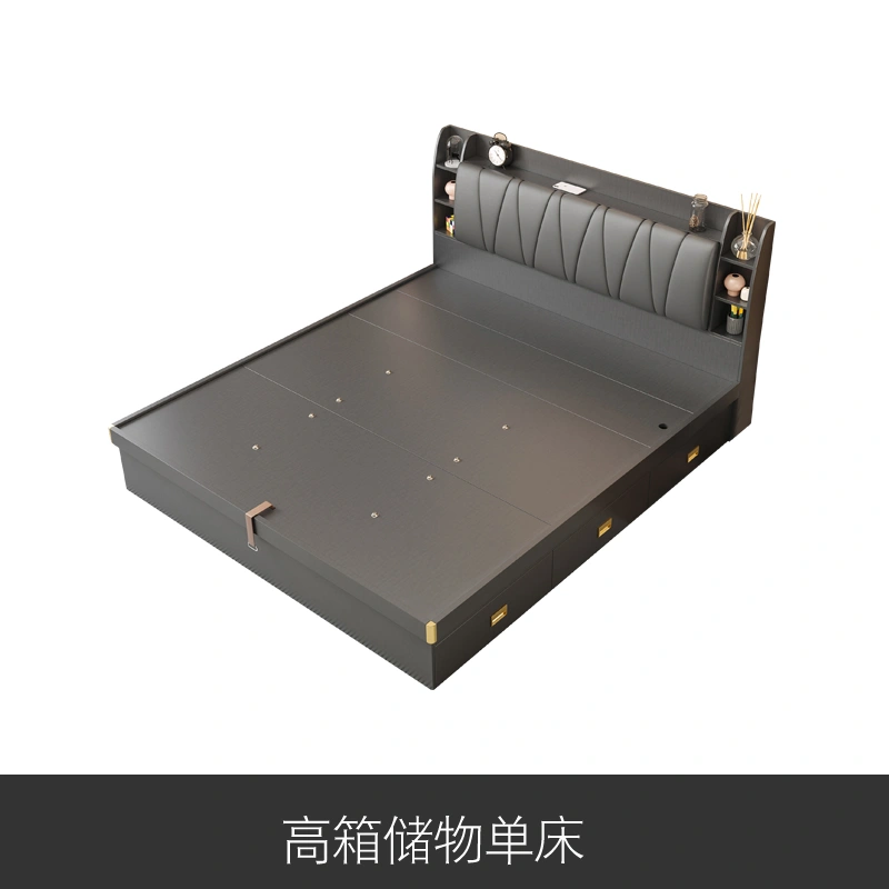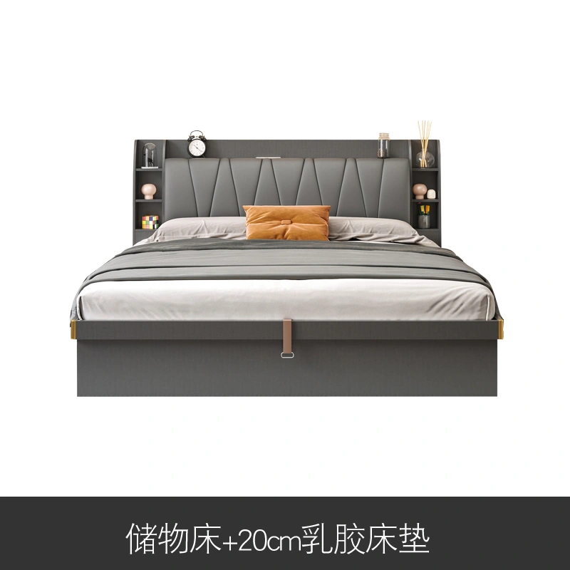 Modern Minimalist Storage High Box Bed 1.8 m Double Bed 1.2 m Small Apartment Pneumatic Storage Master Bedroom Big Bed