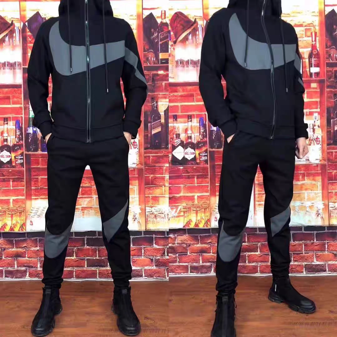 2025 Autumn New Men's Fashion Korean Style Trendy Two-Piece Set Internet Celebrity Style Casual Sports Suit with Stylish Patchwork