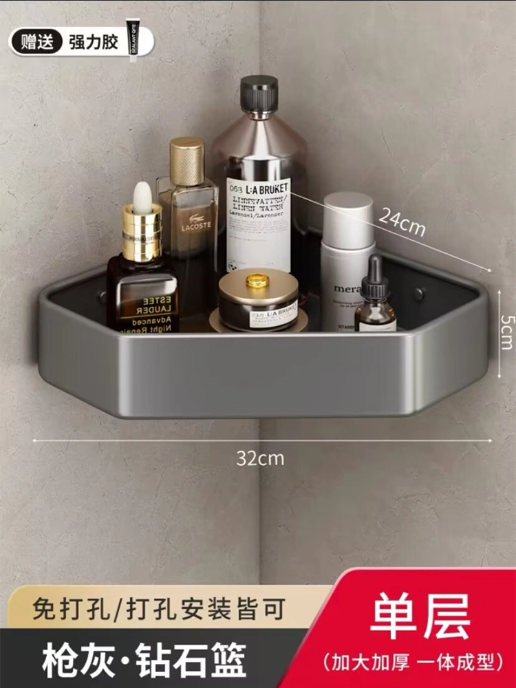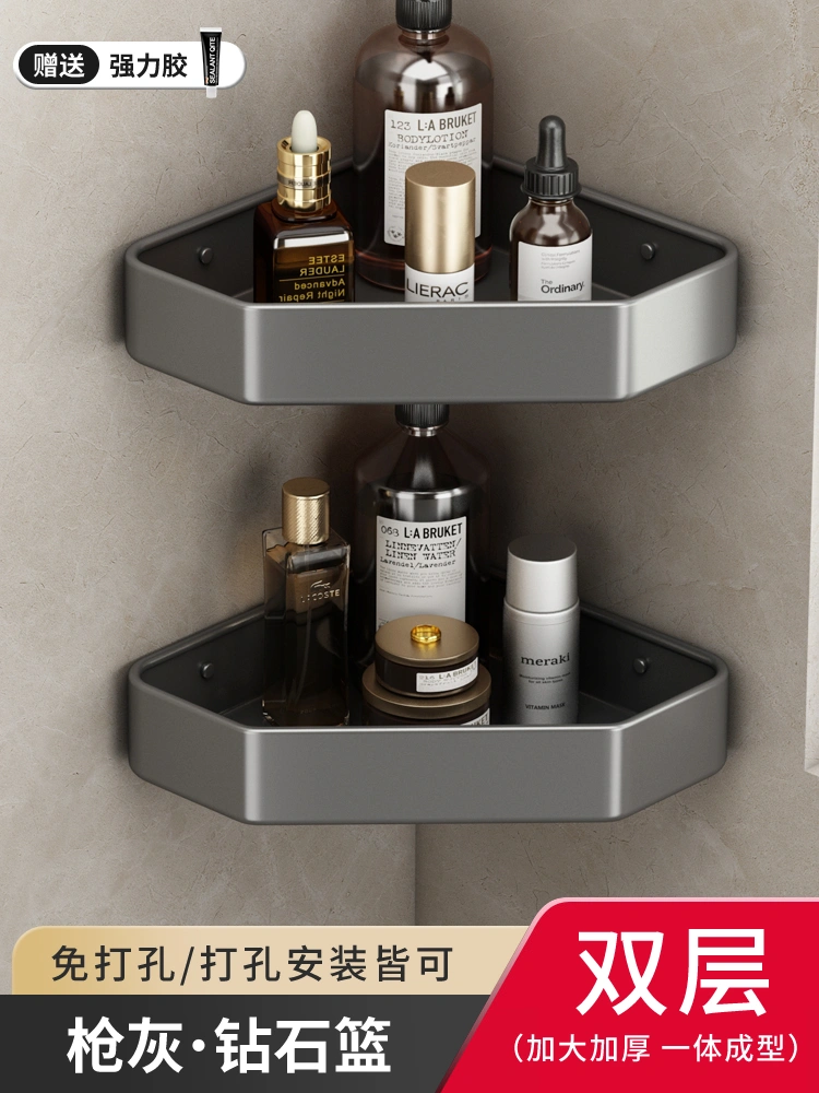 Bathroom Shelf Triangular No-Drill Installation for Restroom, Toilet, Washroom, Sink, Shower Room, Wall-Mounted Bathroom Rack