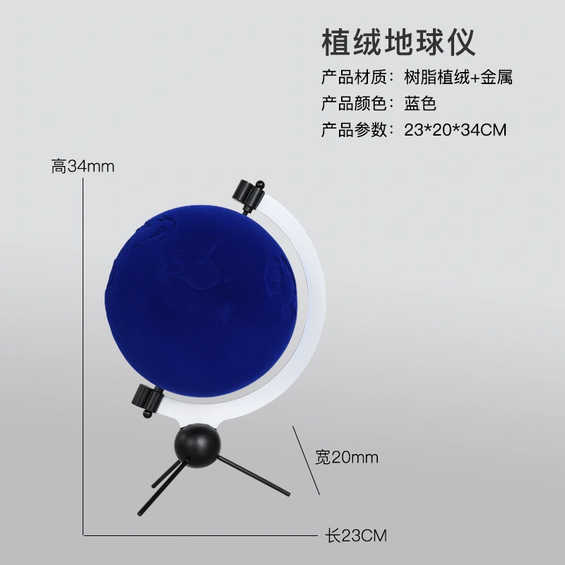 Modern Art Klein Blue Flocking Globe Ornaments Model Room Study Soft Home Living Room Entrance Ornaments