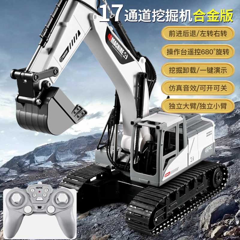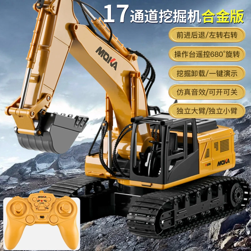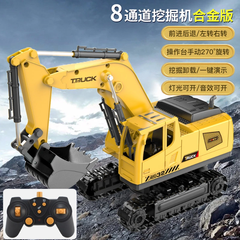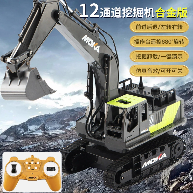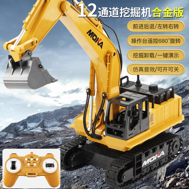 Children's Large Alloy Remote Control Excavator Toy Car for Boys, Realistic Electric Digger, Construction Vehicle Excavator
