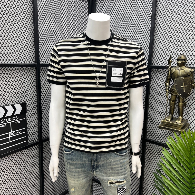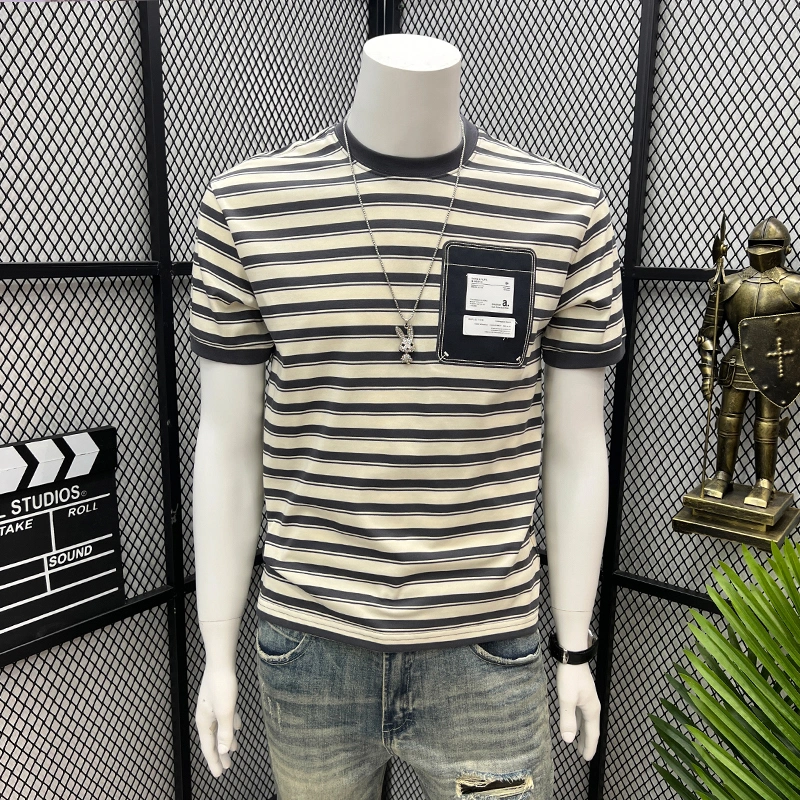 Patchwork T-Shirt for Men, Trendy Striped Short-Sleeve Summer Style, Cool Half-Sleeve 2025 New Model, Internet Celebrity Style Half-Sleeve Tee