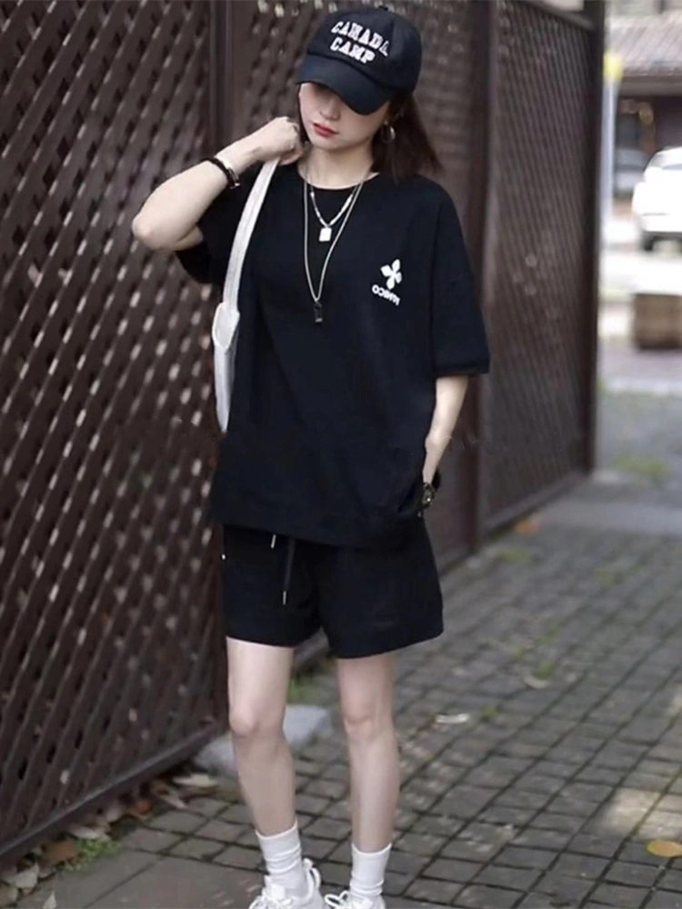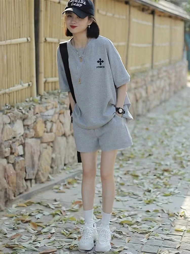 Pure Cotton Short-Sleeved Shorts Casual Sports Suit Women's Summer Korean Style Student Loose Slimming Fashionable Running Two-Piece Set