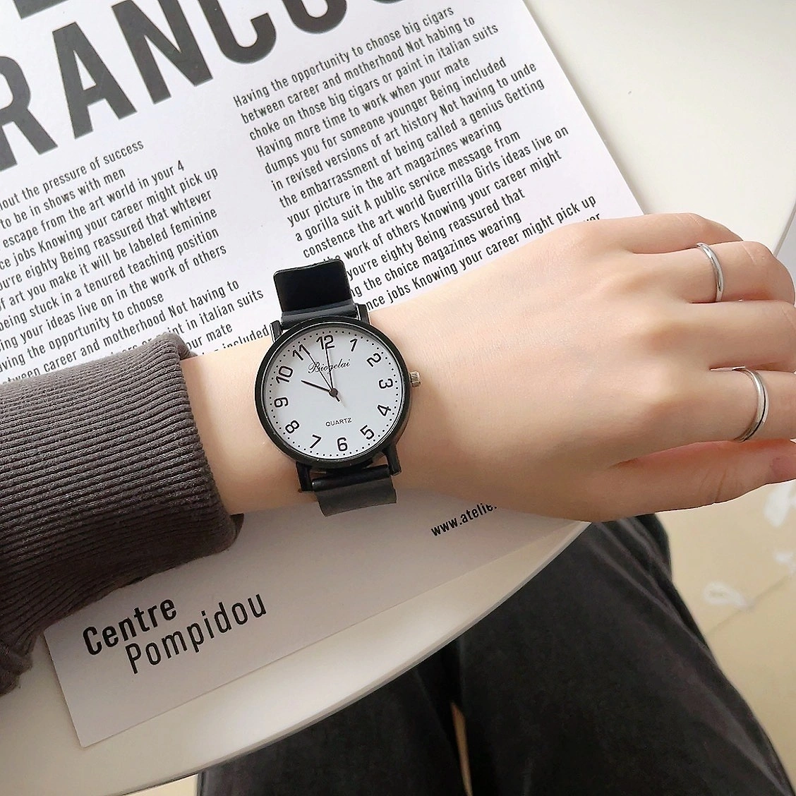 Niche ins Minimalist Unisex Couple Trendy Cool Style Quartz Watch for Civil Servants, Students, and High School/College Entrance Exam Preparation