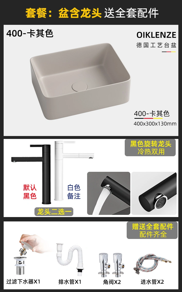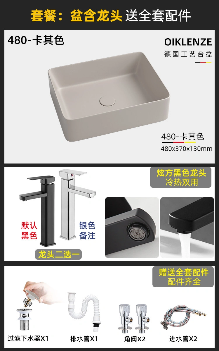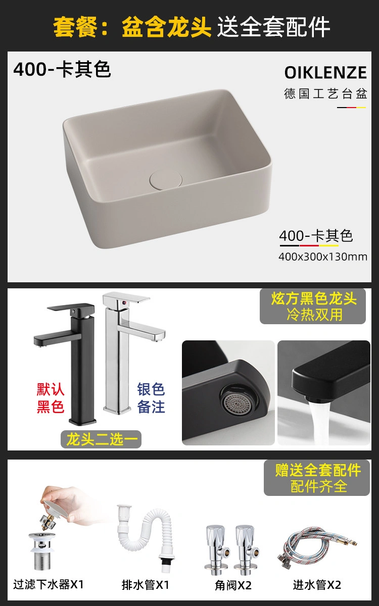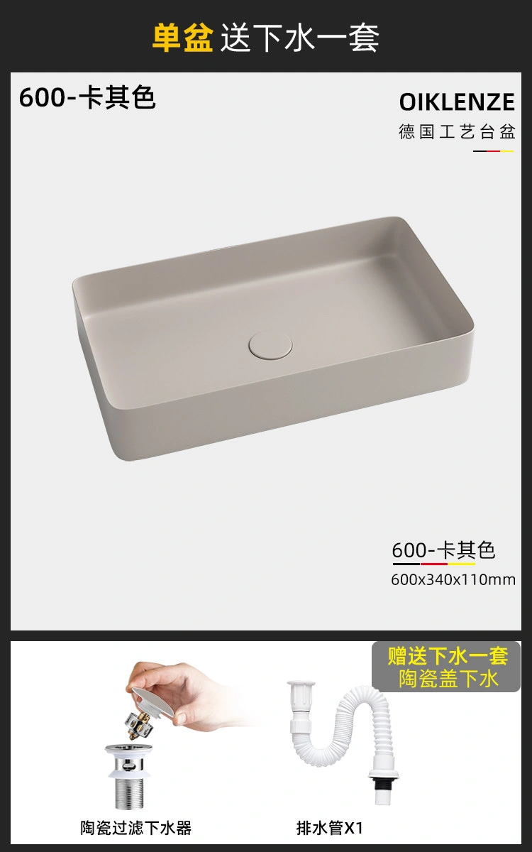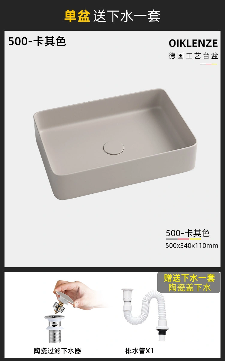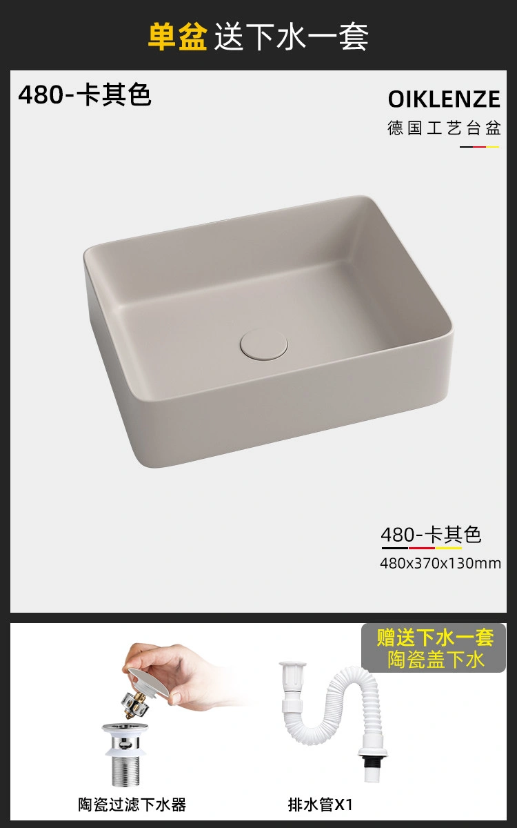 Creative Ceramic Khaki Countertop Basin Frosted Bathroom Washbasin Square Wash Basin Matte Art Basin