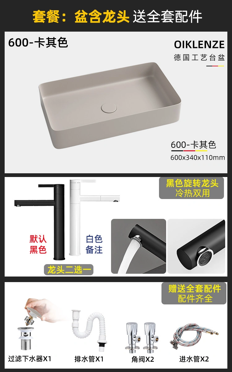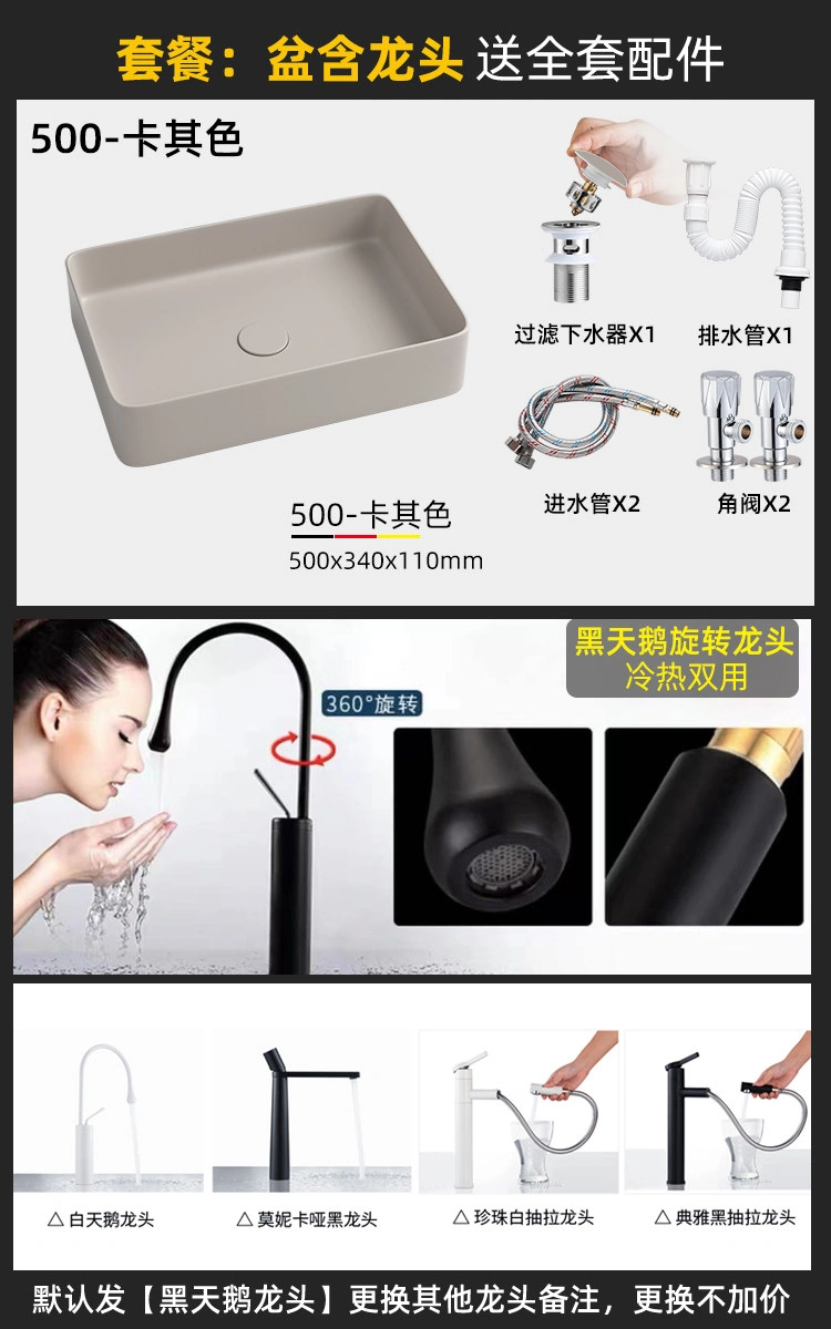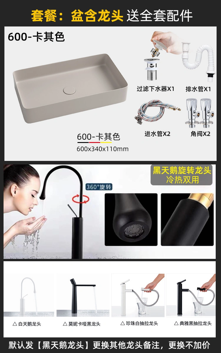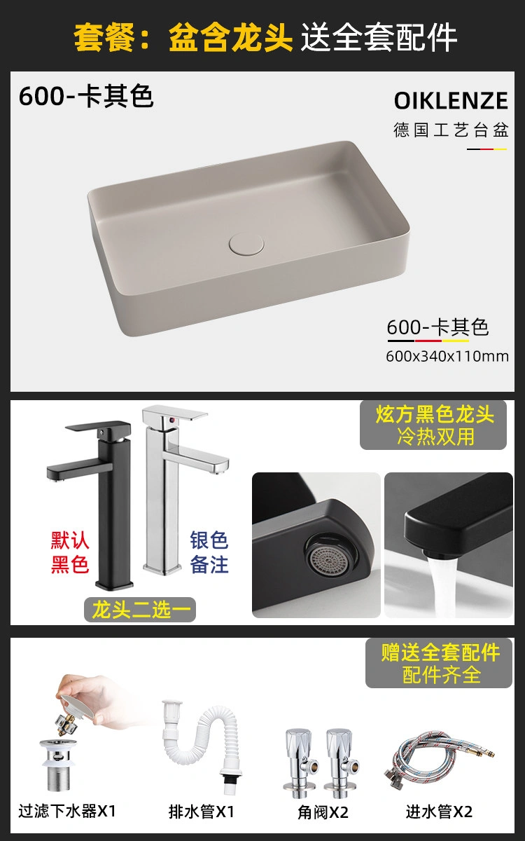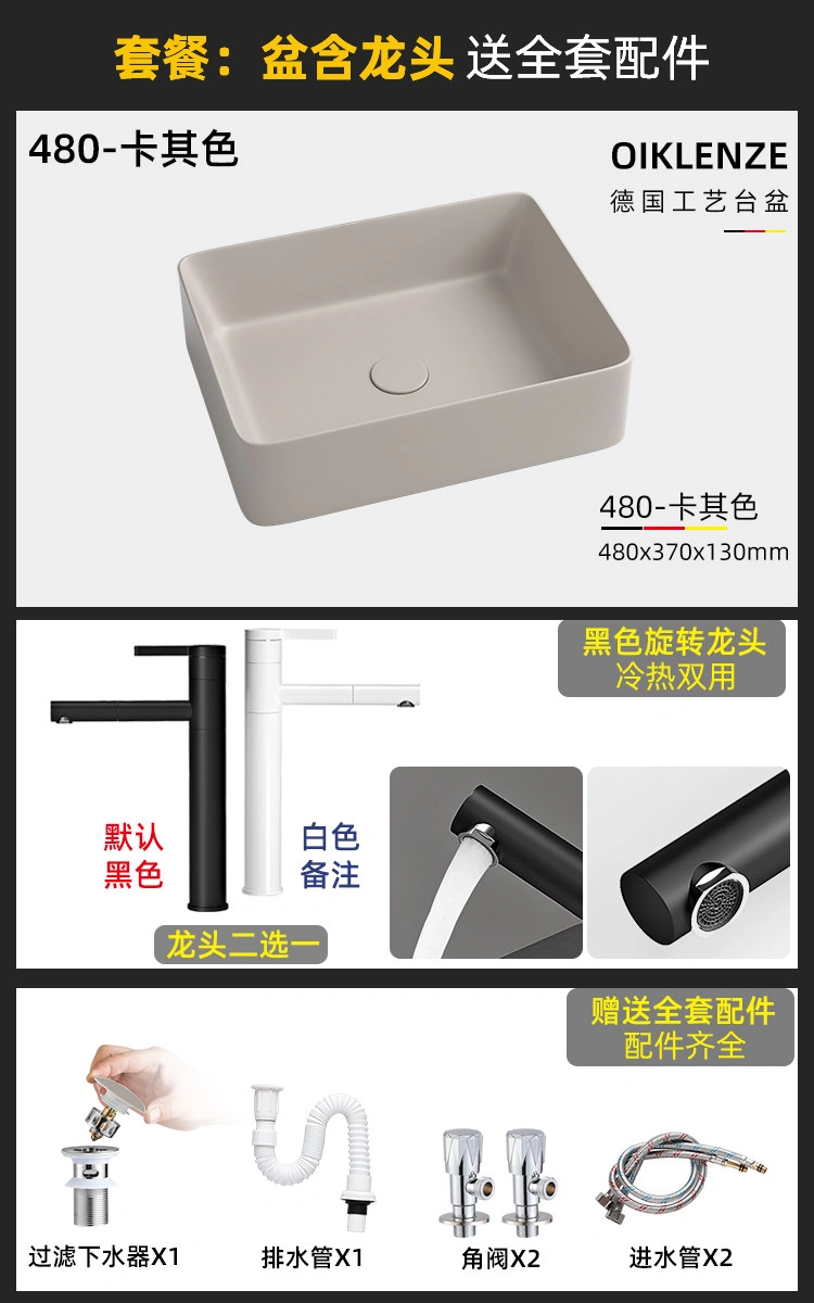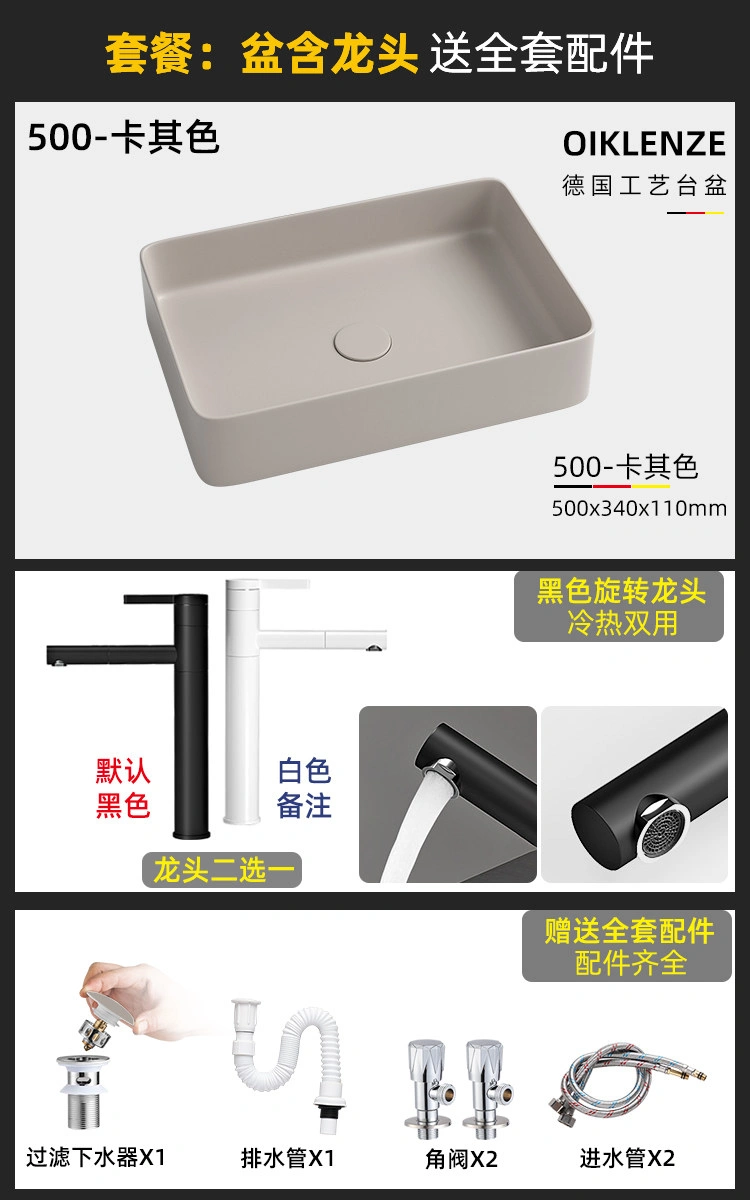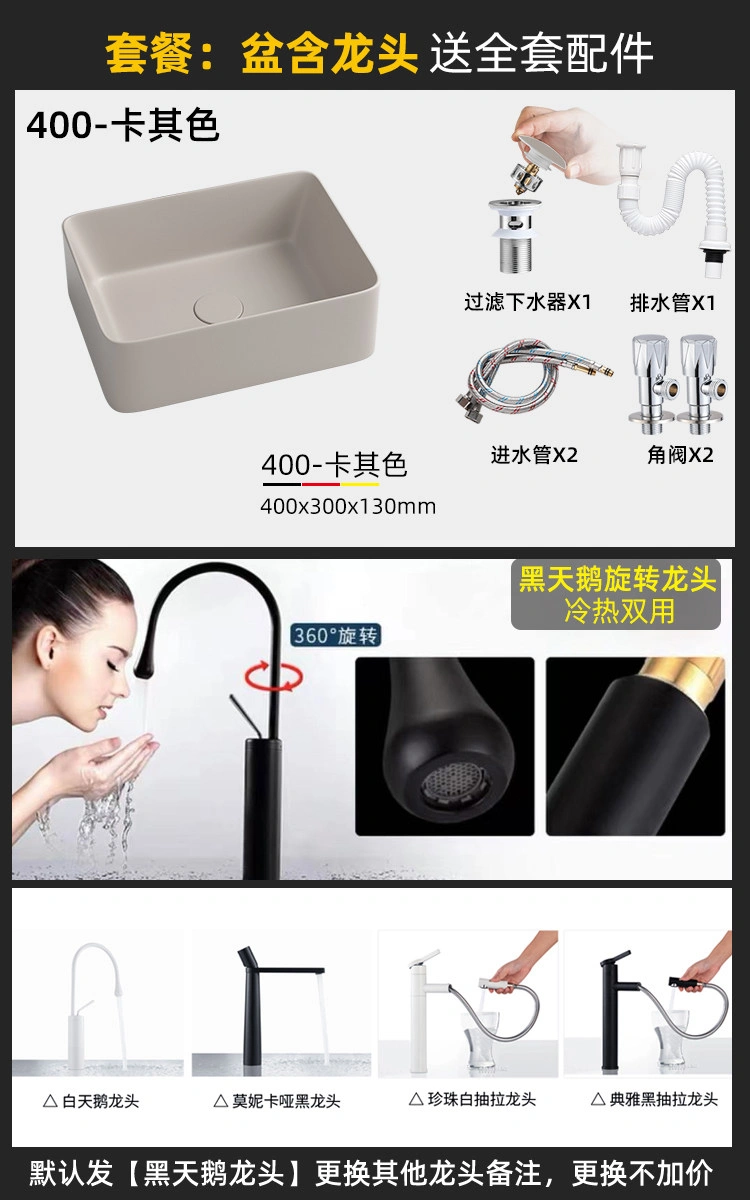 Creative Ceramic Khaki Countertop Basin Frosted Bathroom Washbasin Square Wash Basin Matte Art Basin