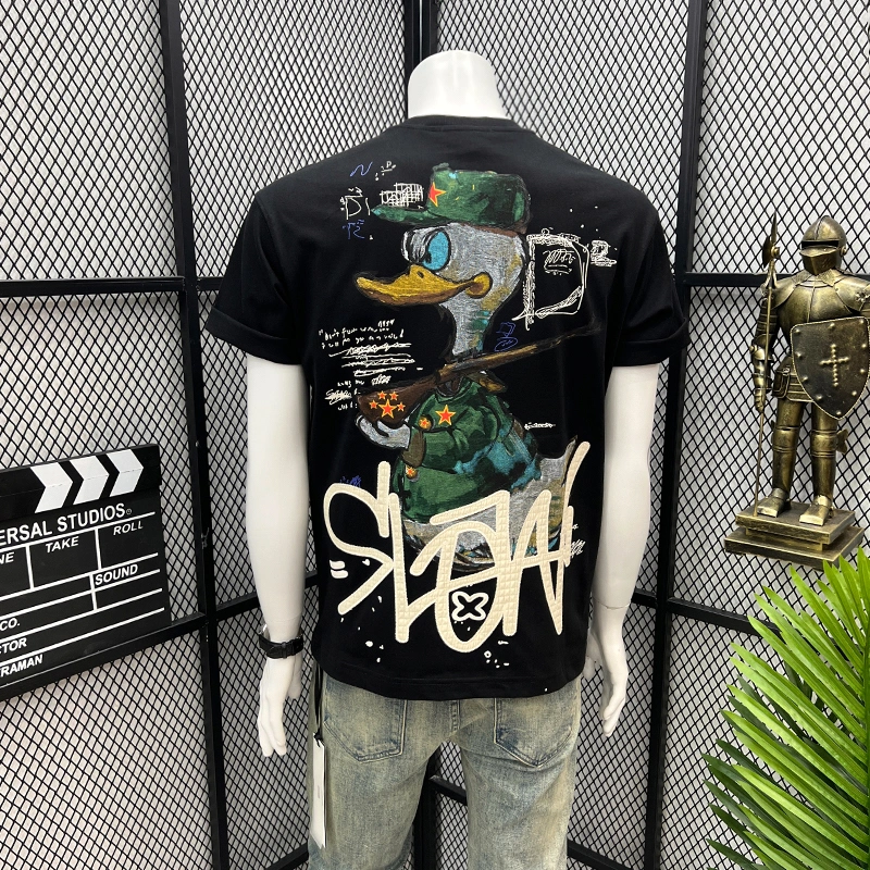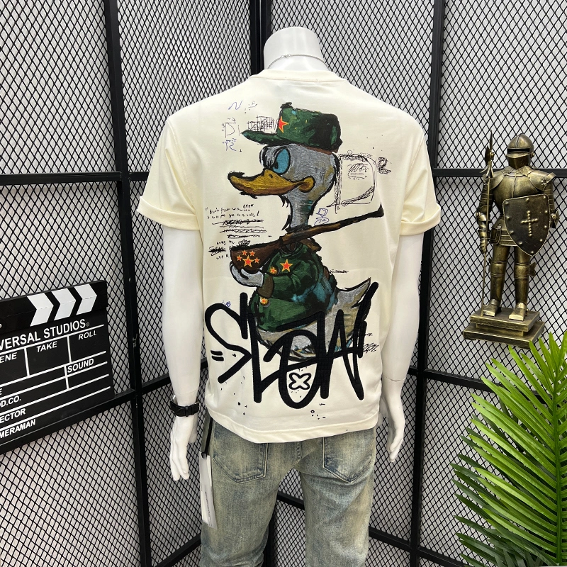 2025 Summer American-Style Trendy Brand T-Shirt with Fun Cartoon Print on the Back, Short-Sleeved, Loose Casual Top for Men ins T-Shirt