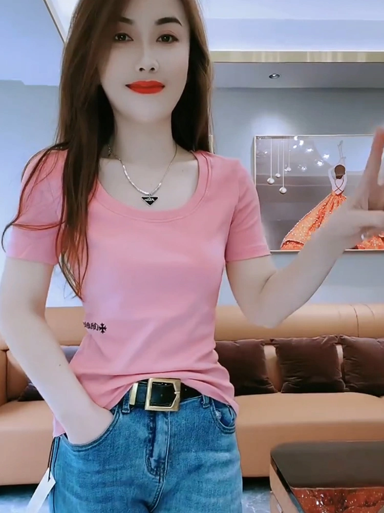 2024 Summer New Style Embroidered Letter U-Neck Pure Cotton Short-Sleeved T-Shirt for Women, Slim Fit, Elegant, Slimming, Versatile Casual Top