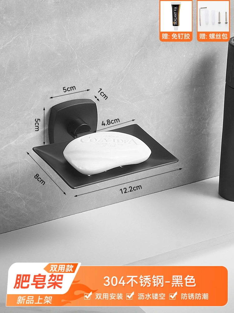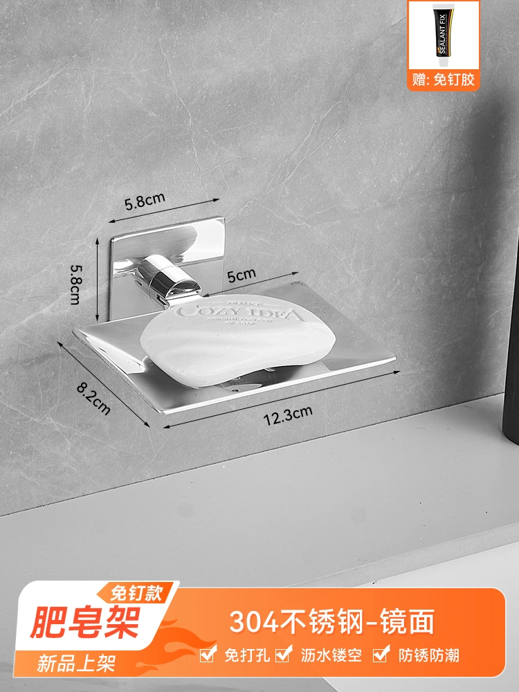 304 Stainless Steel Soap Dish Bathroom Soap Holder Wall-Mounted Drainable Soap Basket No Drilling Required