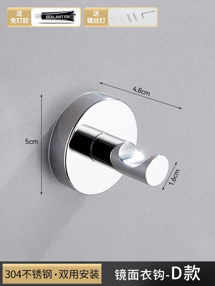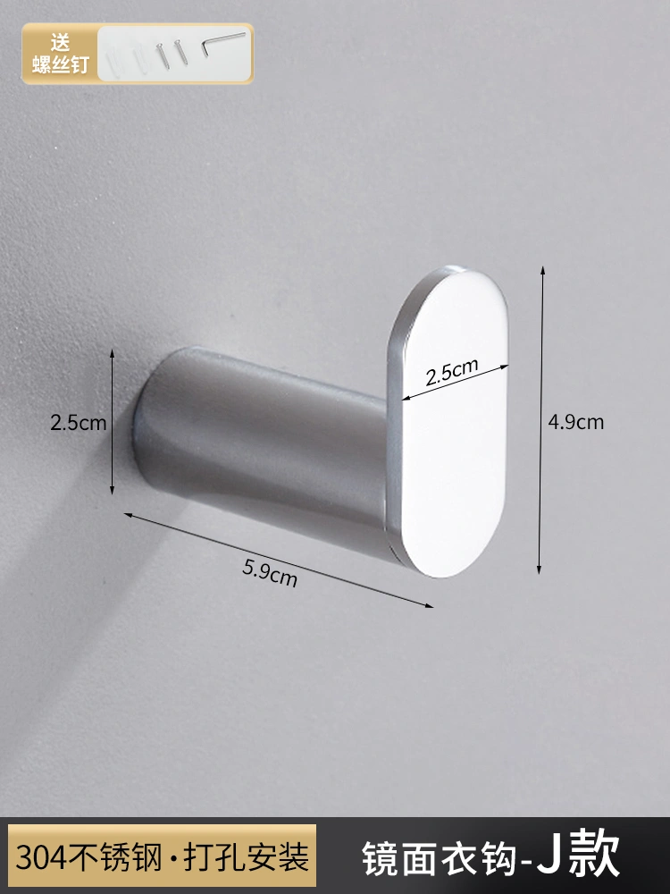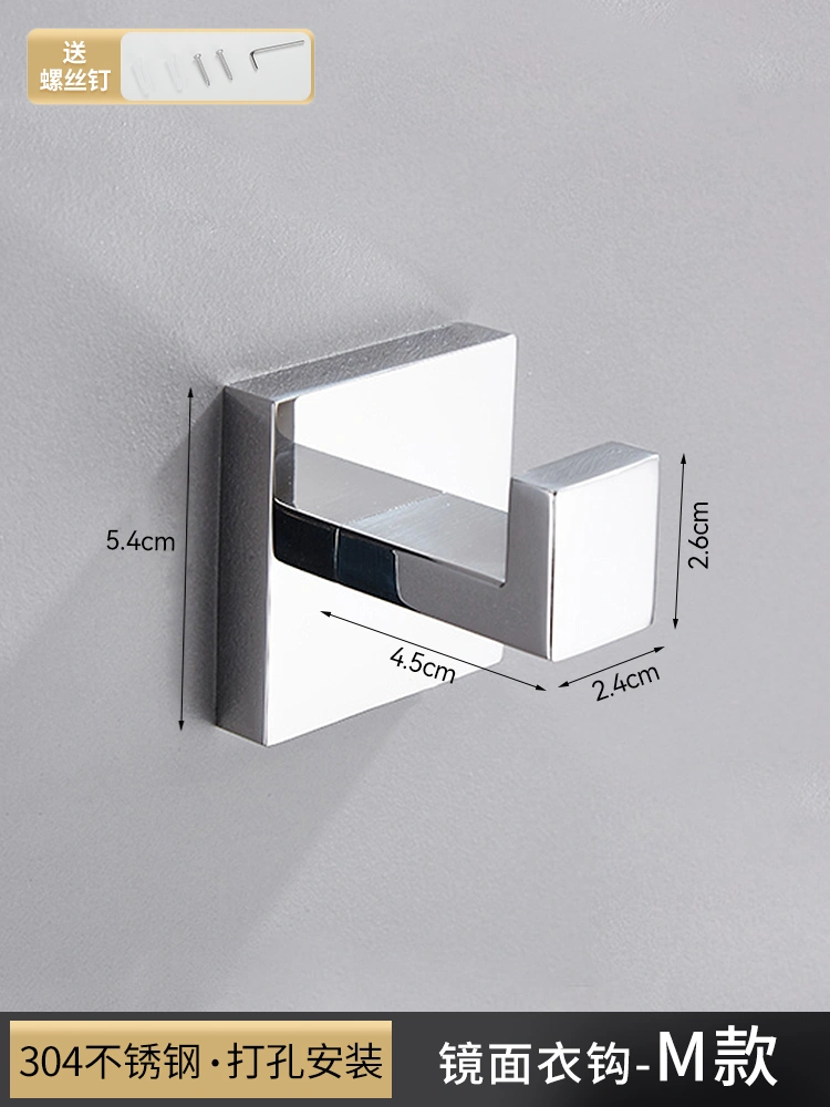 304 Stainless Steel Coat Hook, No-Drill Single Hook, Wall-Mounted Bathroom Hook, Restroom Entryway Coat and Hat Hook