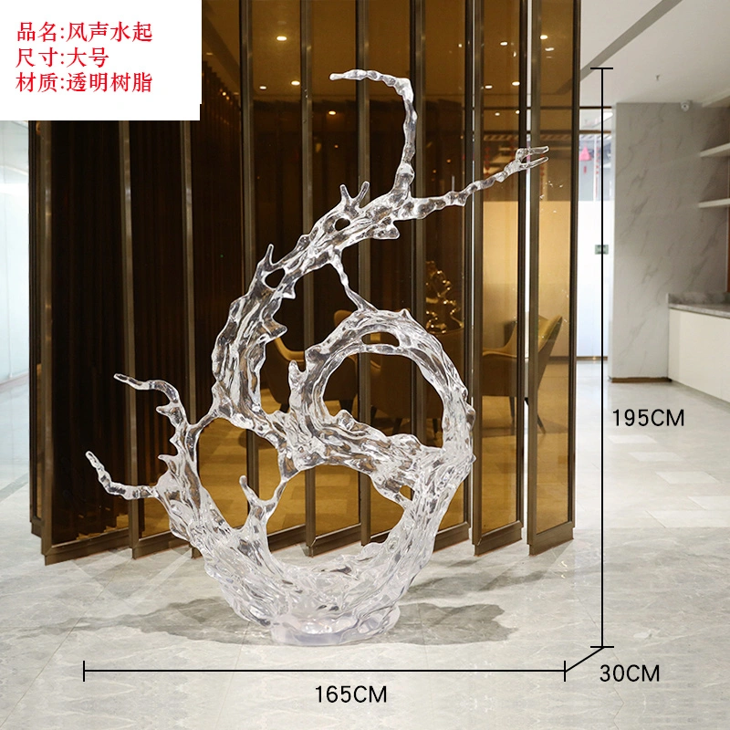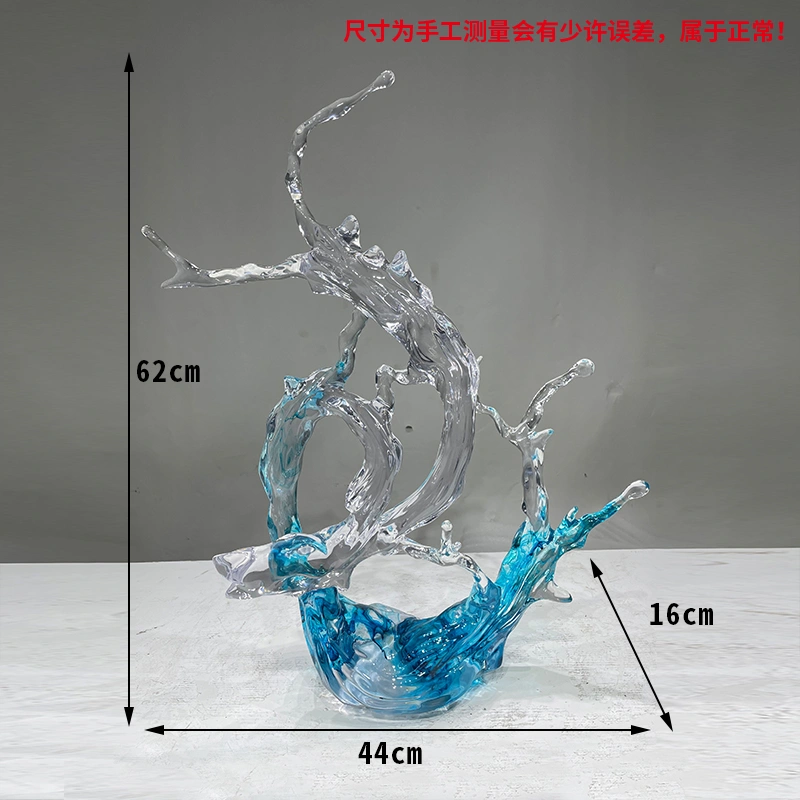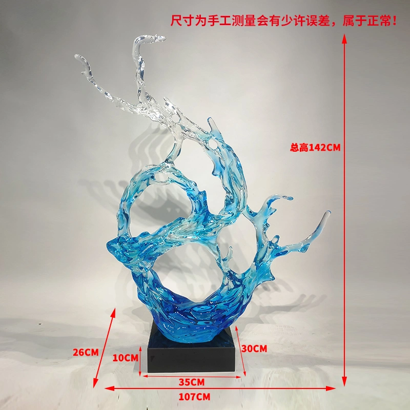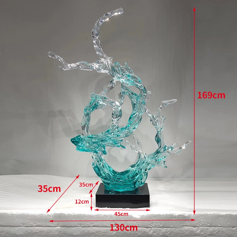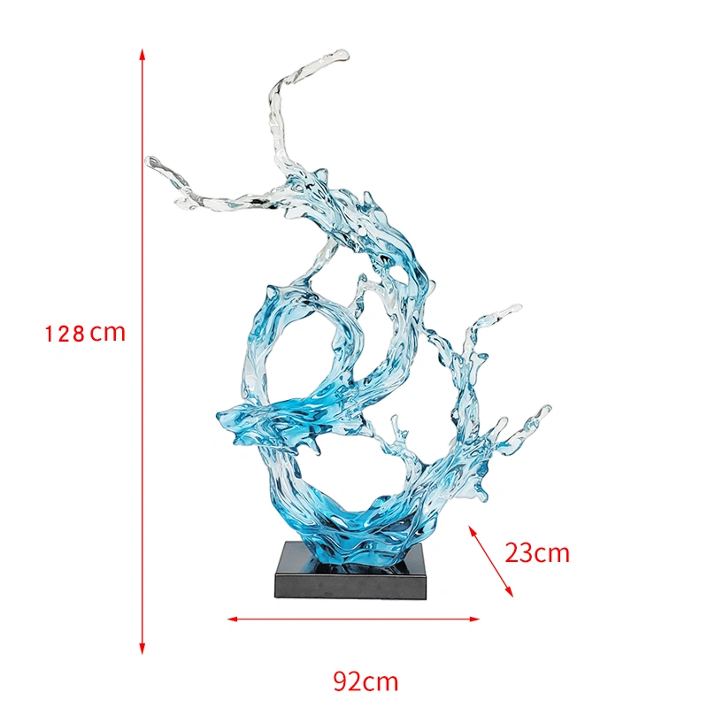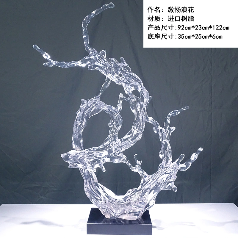 Luxury Transparent Resin Wave Sculpture for Hotel Lobby, High-End Art Soft Decoration for Living Room Tv Cabinet