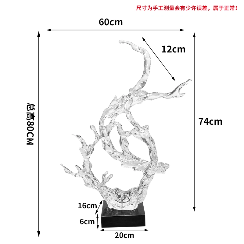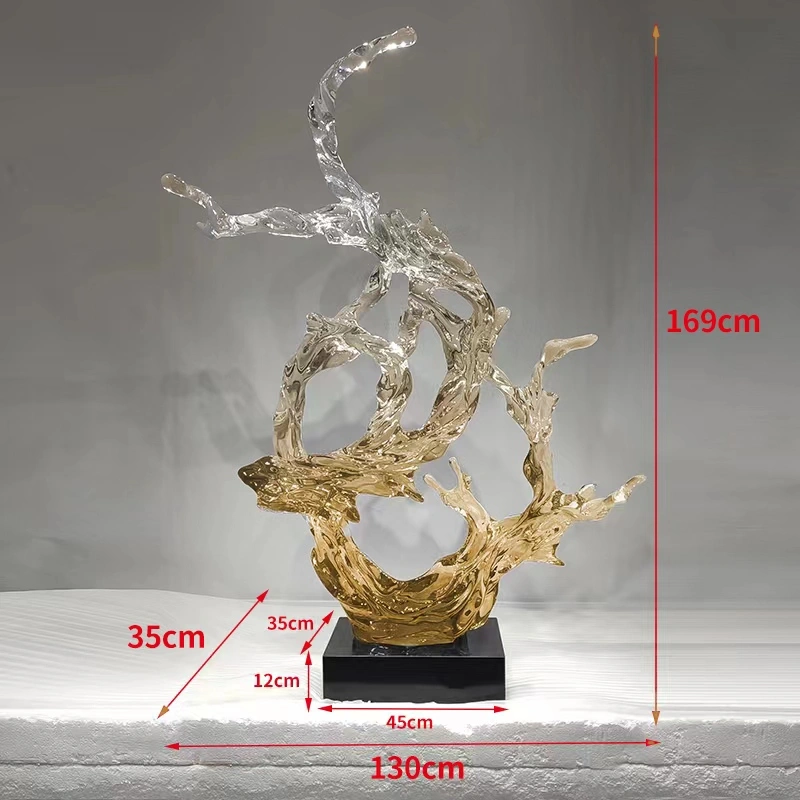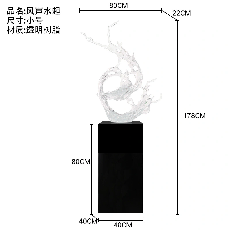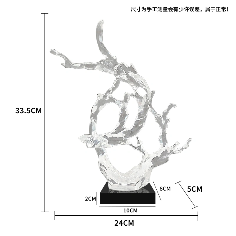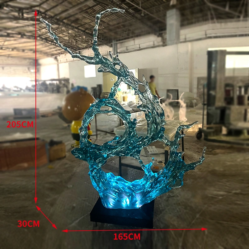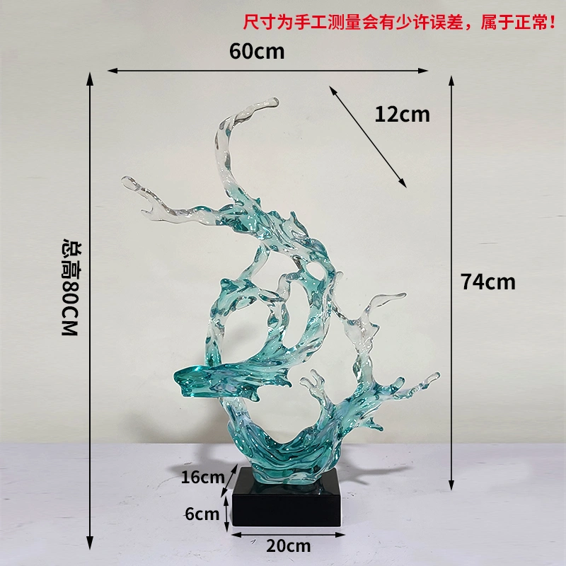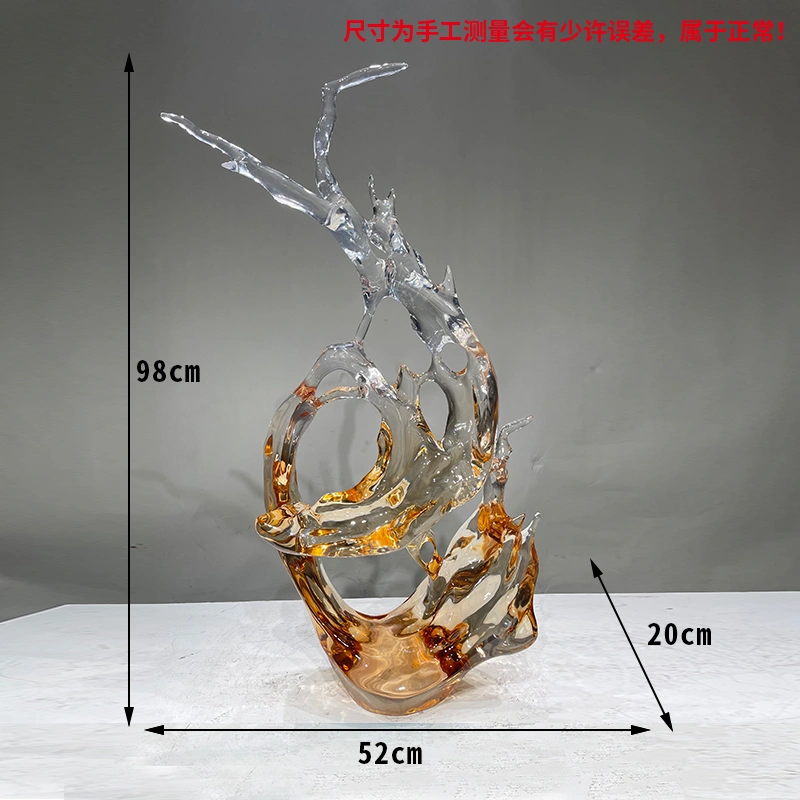 Luxury Transparent Resin Wave Sculpture for Hotel Lobby, High-End Art Soft Decoration for Living Room Tv Cabinet