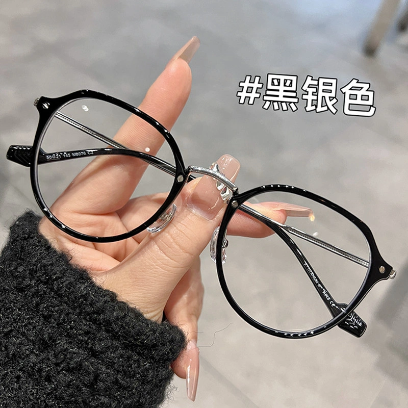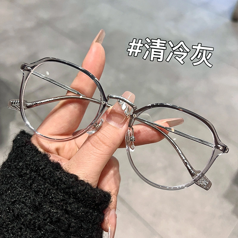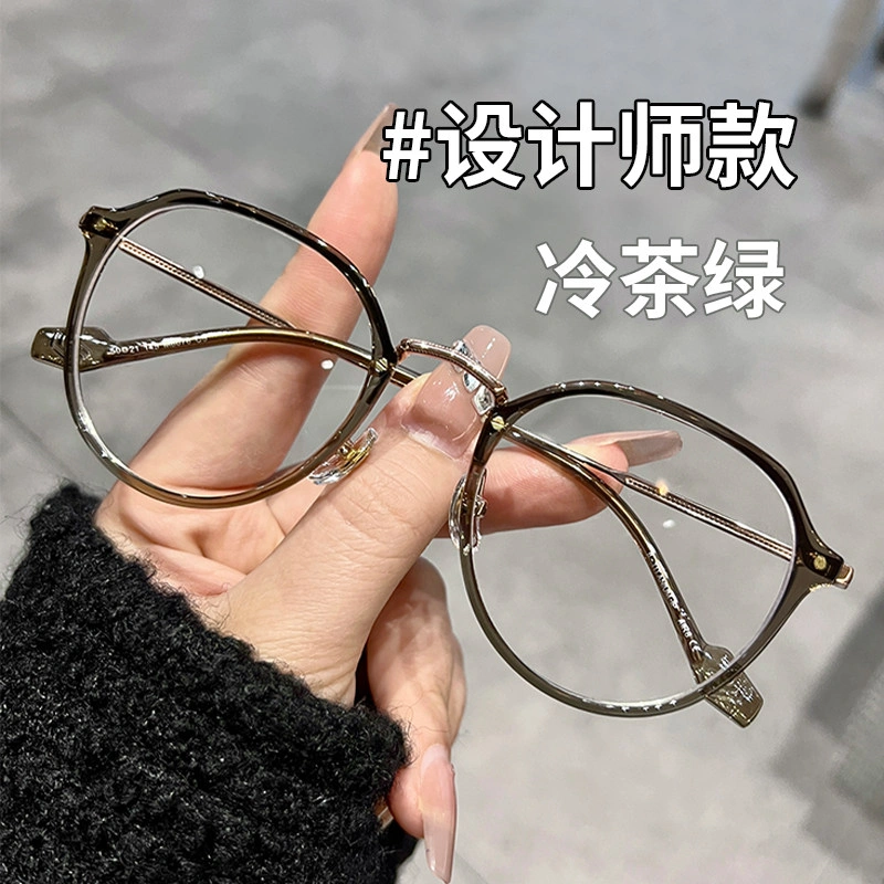 High-End Ultra-Light Cold Tea-Colored Plain Prescription Glasses for Women, Suitable for Prescription Lenses, Blue Light Blocking, Suitable for Round Faces, Eyeglass Frames