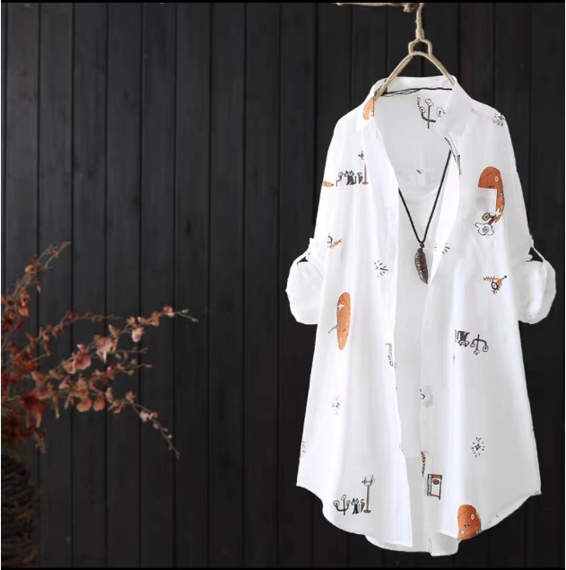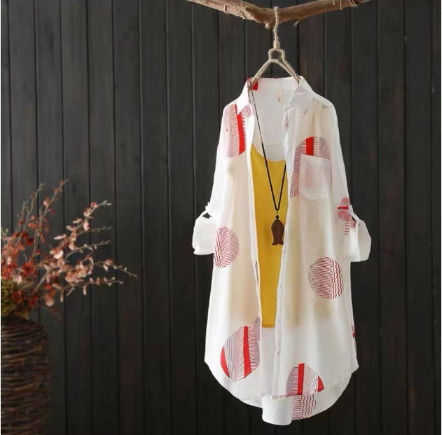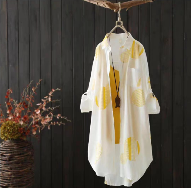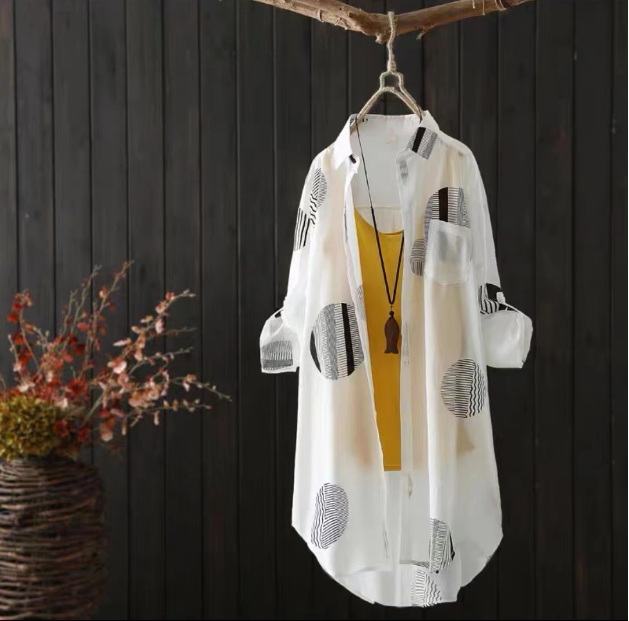 Mid-Length Printed Sun Protection Shirt for Women, New Summer Casual Loose Shirt, Cardigan, Thin Jacket, Beach Wear for Women