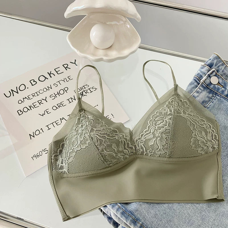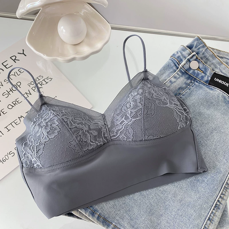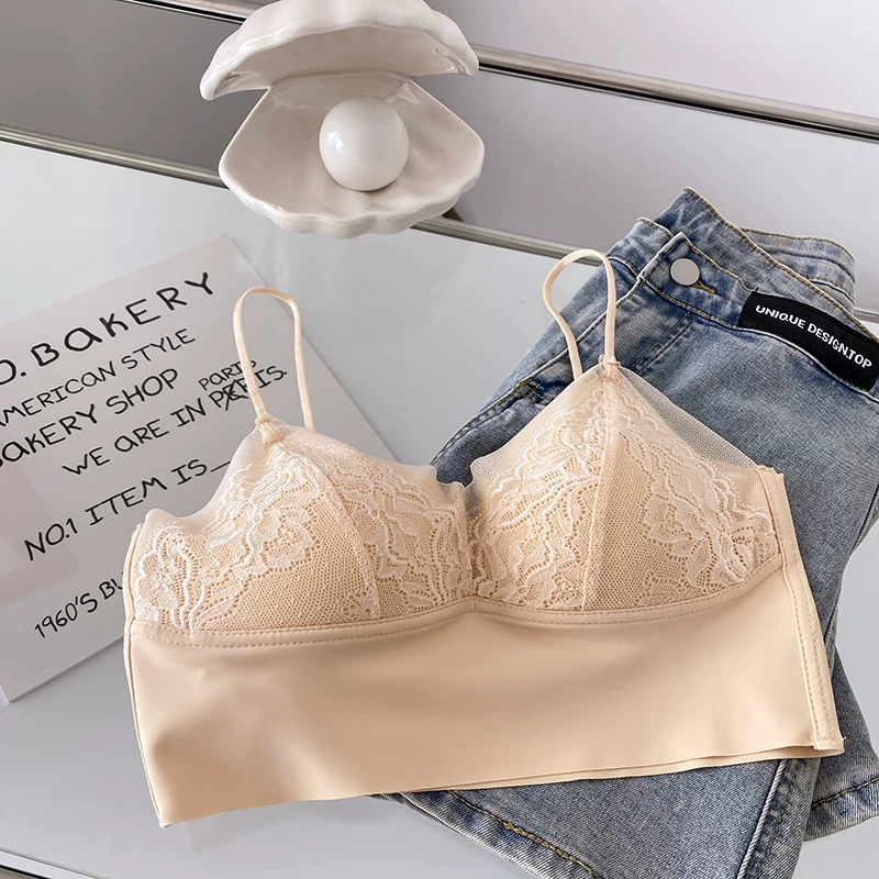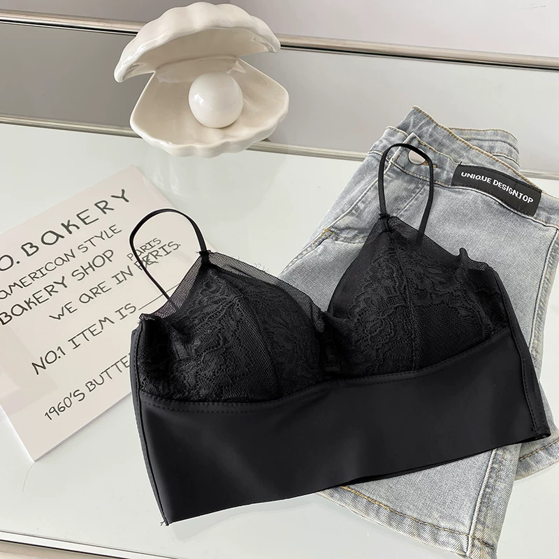 Plus-Size Ice Silk One-Piece Bra with Beautiful Back Design, Latex Cotton, Push-Up, Anti-Slip Cups, Lace, Short Camisole