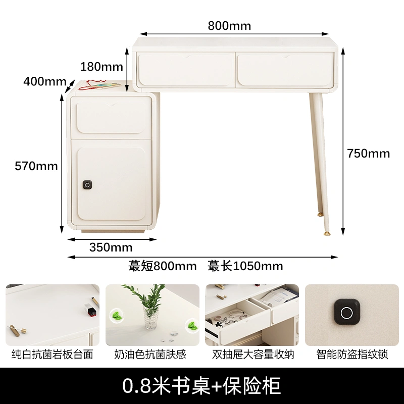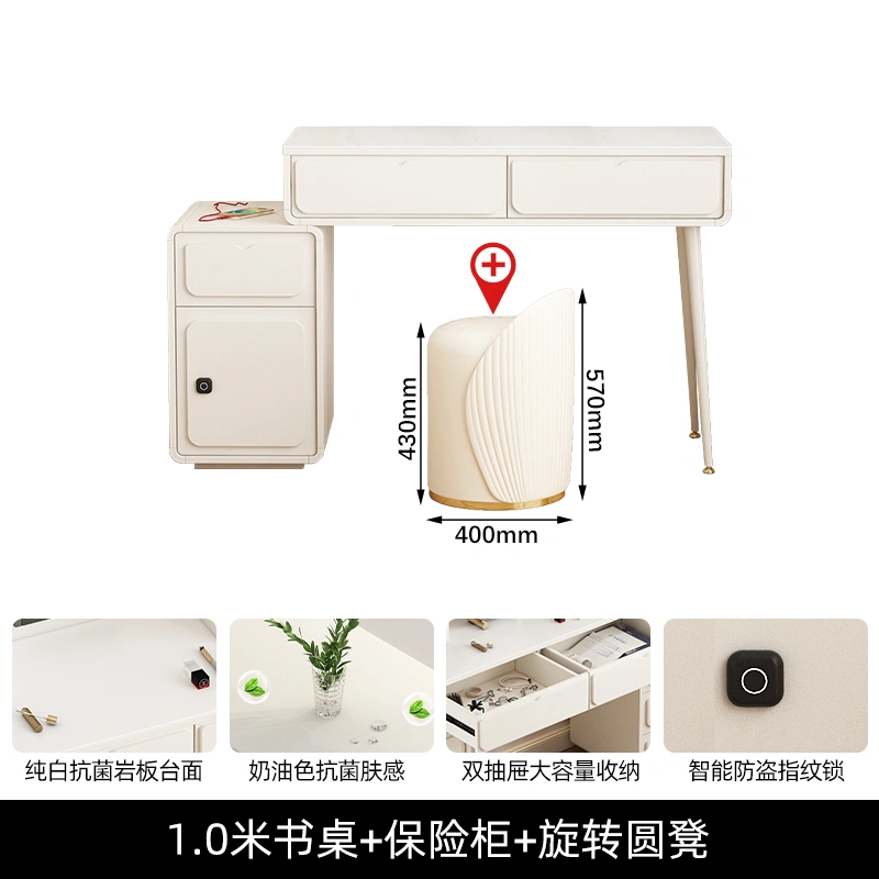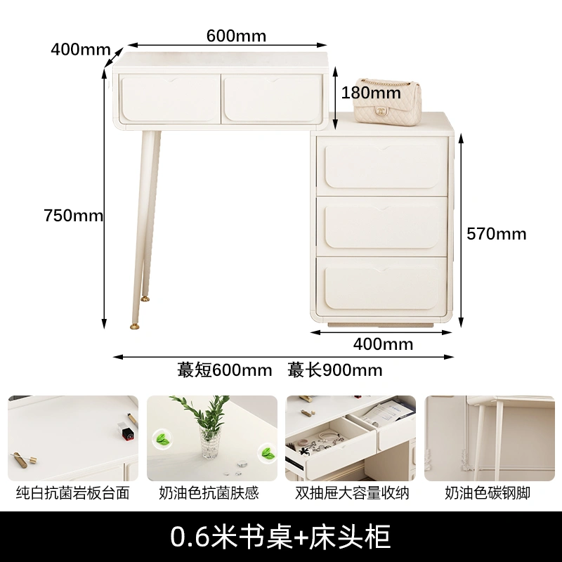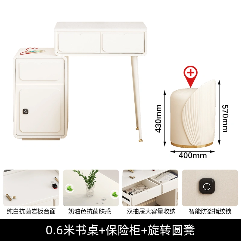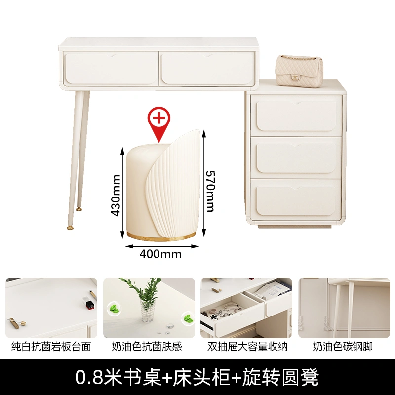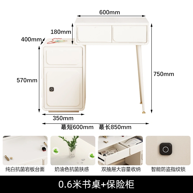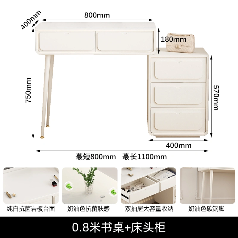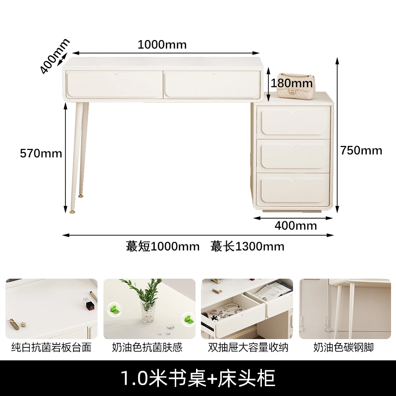 French-Style Cream-Colored Desk with Integrated Storage Cabinet for Small Bedrooms, Modern and Simple, Extendable Student Study Desk Cabinet