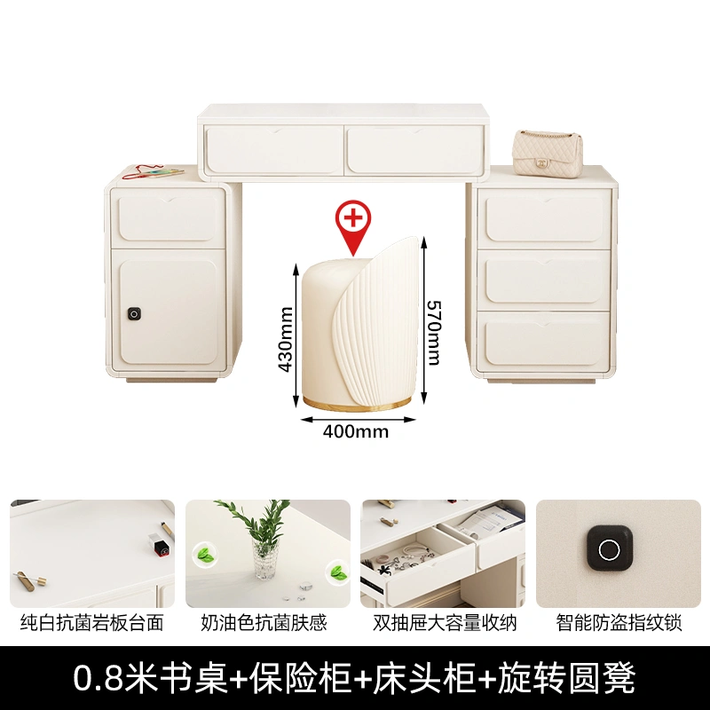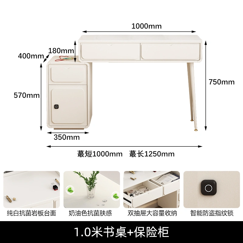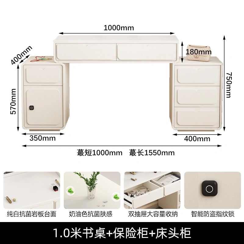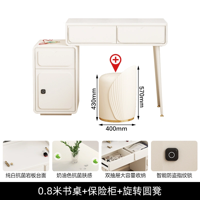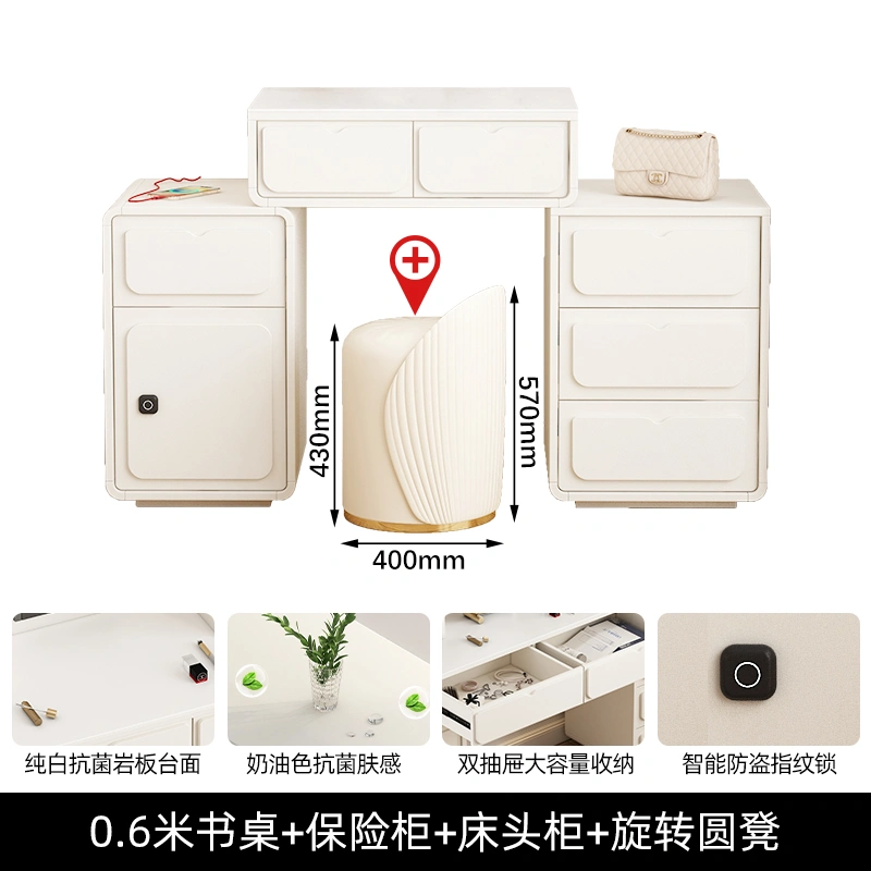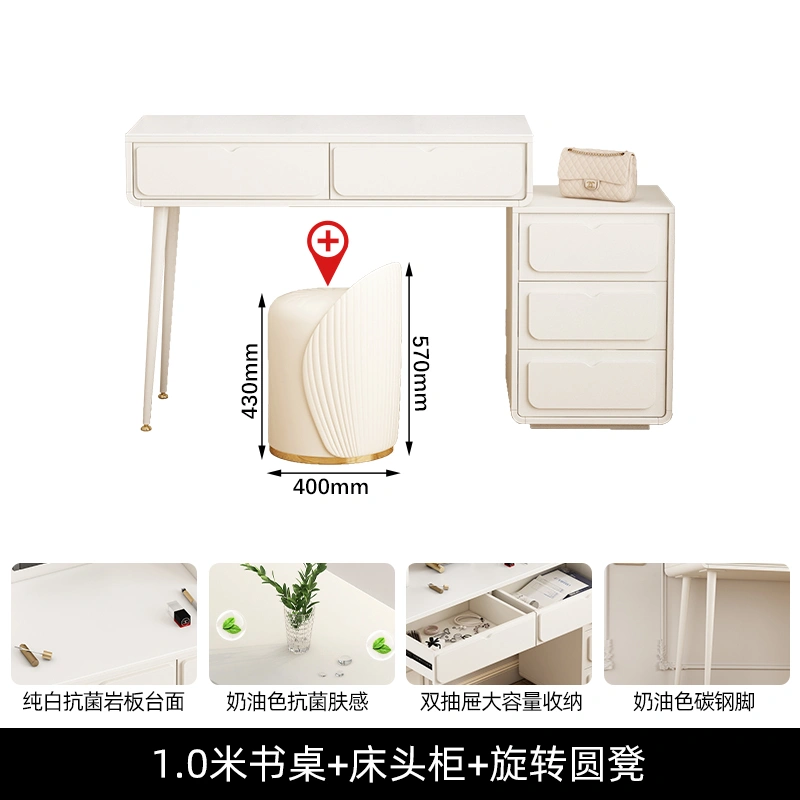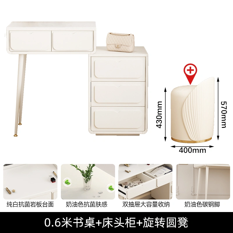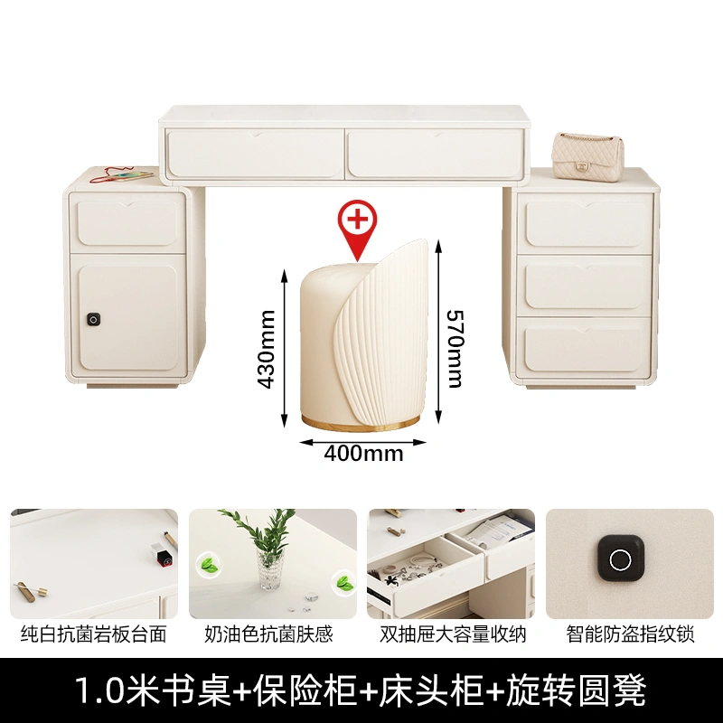 French-Style Cream-Colored Desk with Integrated Storage Cabinet for Small Bedrooms, Modern and Simple, Extendable Student Study Desk Cabinet