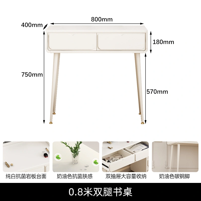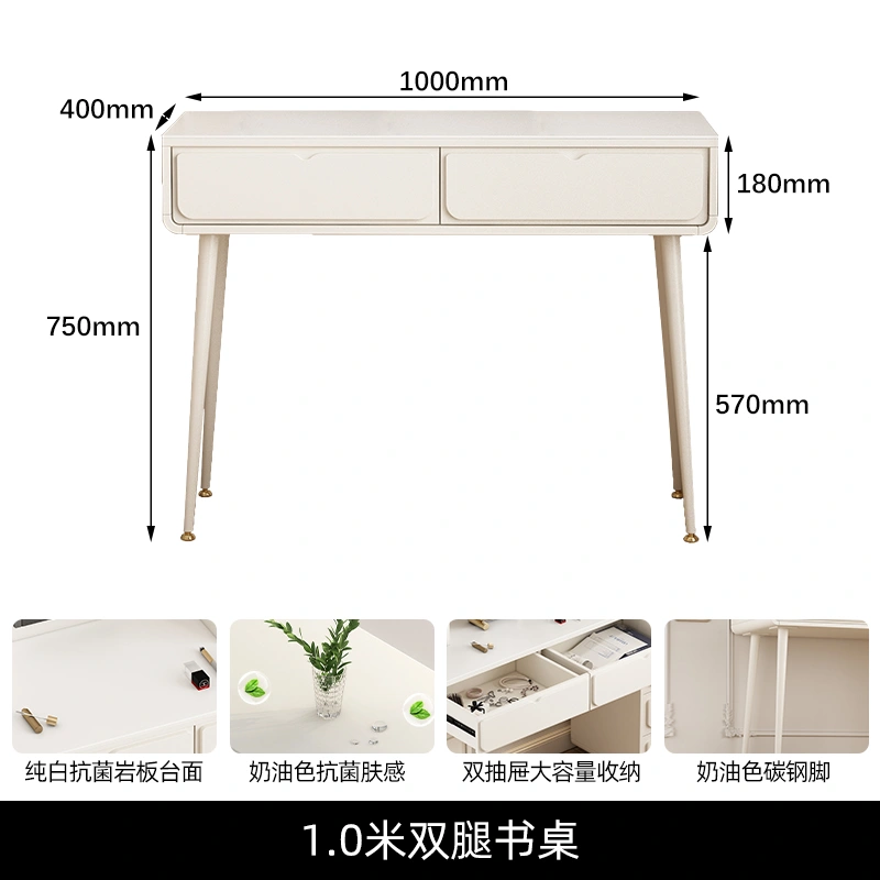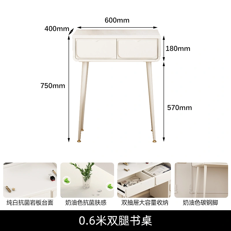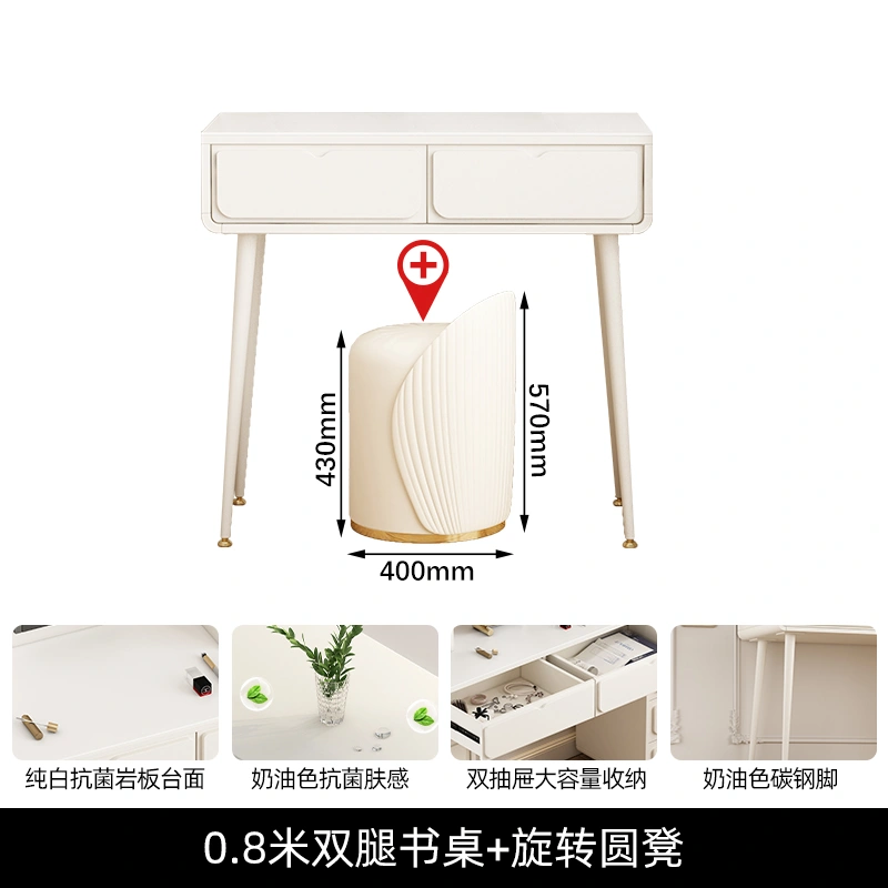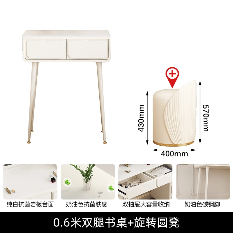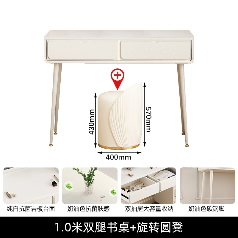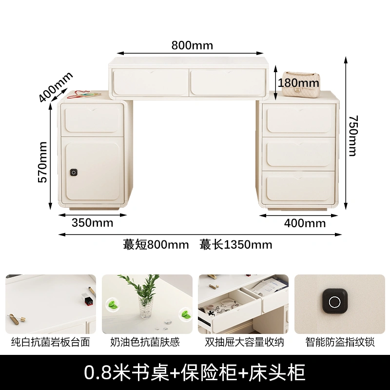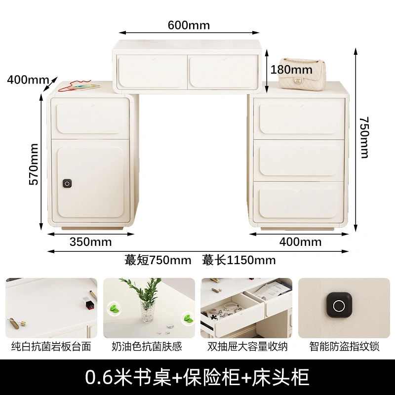 French-Style Cream-Colored Desk with Integrated Storage Cabinet for Small Bedrooms, Modern and Simple, Extendable Student Study Desk Cabinet