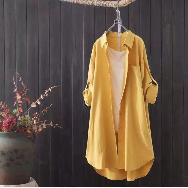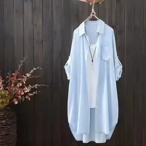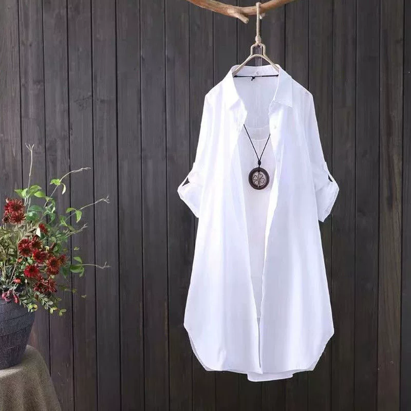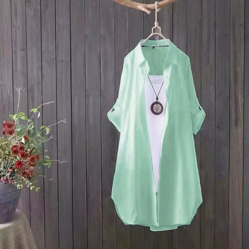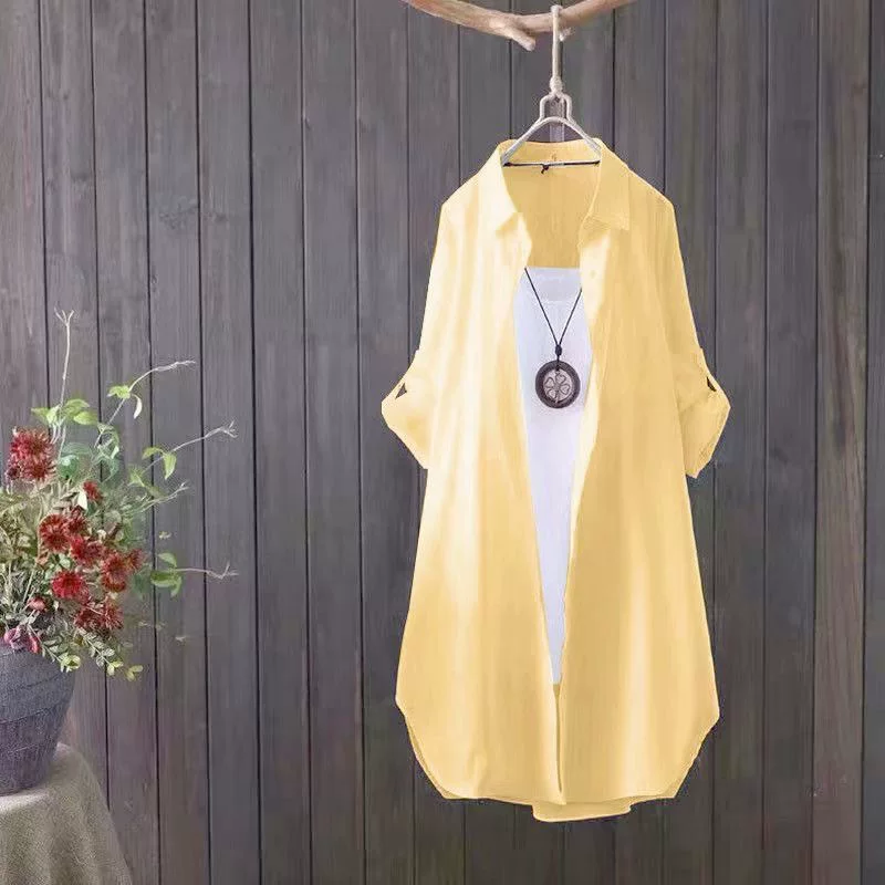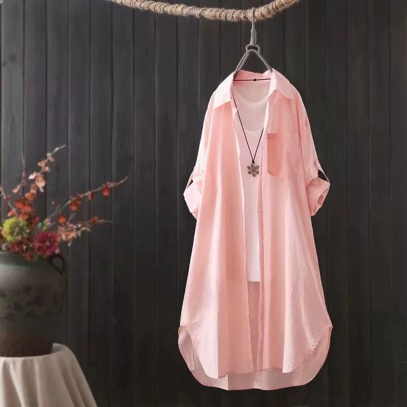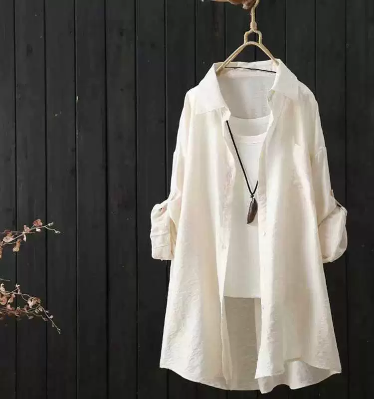 Summer 2023 New Product Mid-Length Solid Color Sun Protection Shirt Women's Thin Long-Sleeved Air-Conditioning Shirt Beige Beach Wear