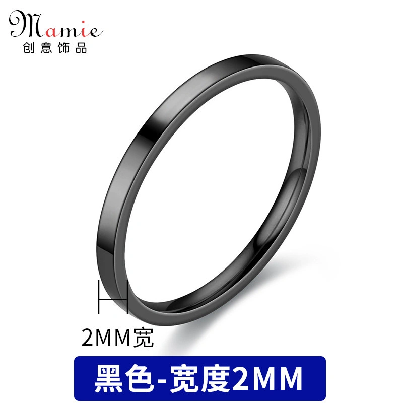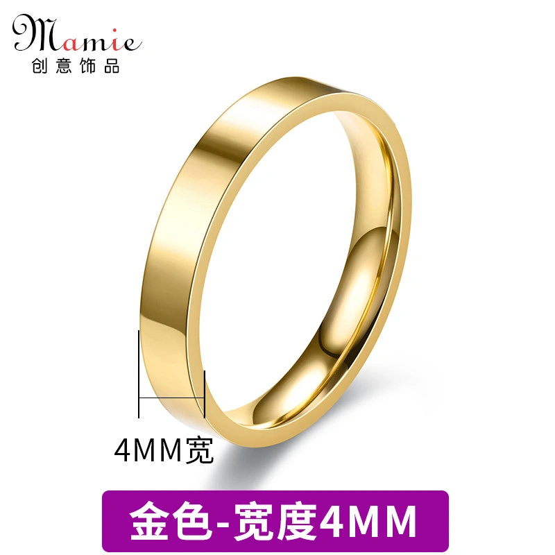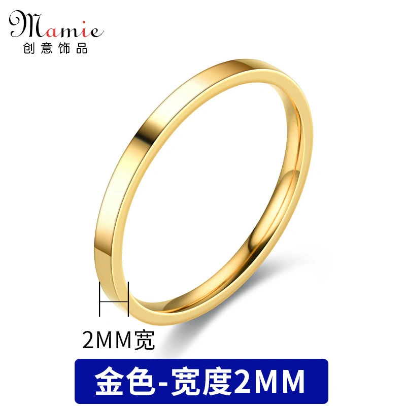 2mm Smooth Plain Ring for Men and Women, Non-Fading, Niche High-End Style, ins Style Titanium Steel, Simple 18K Gold Ring