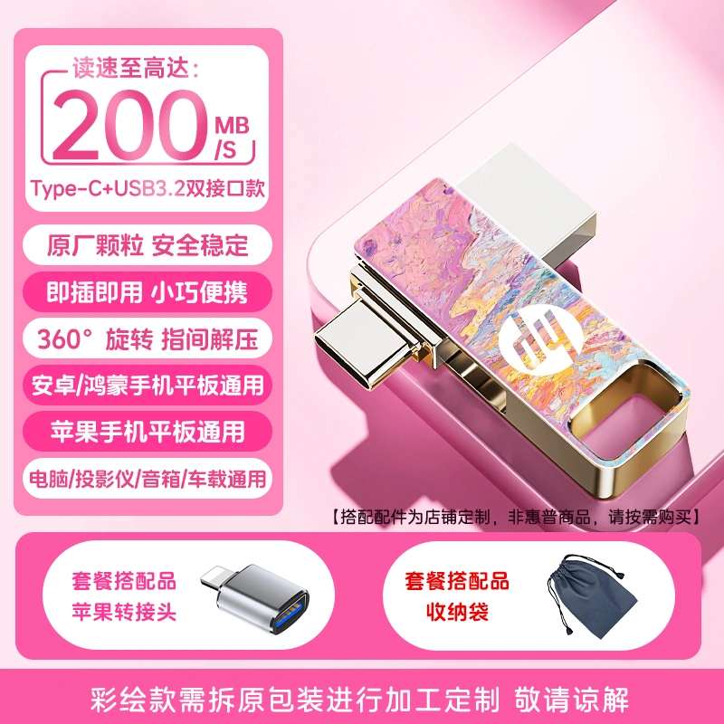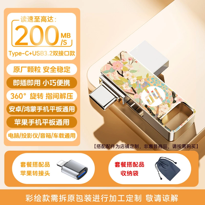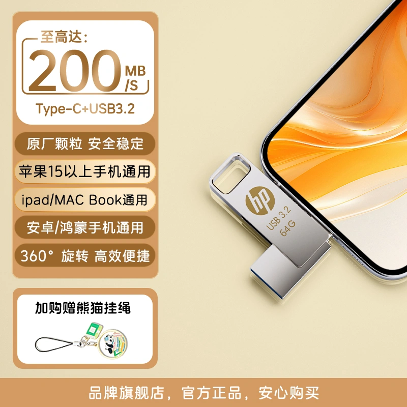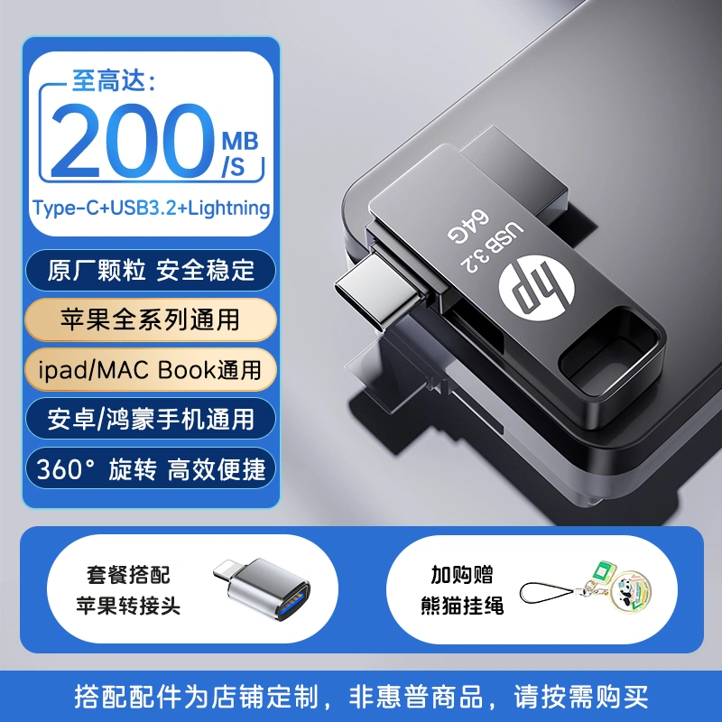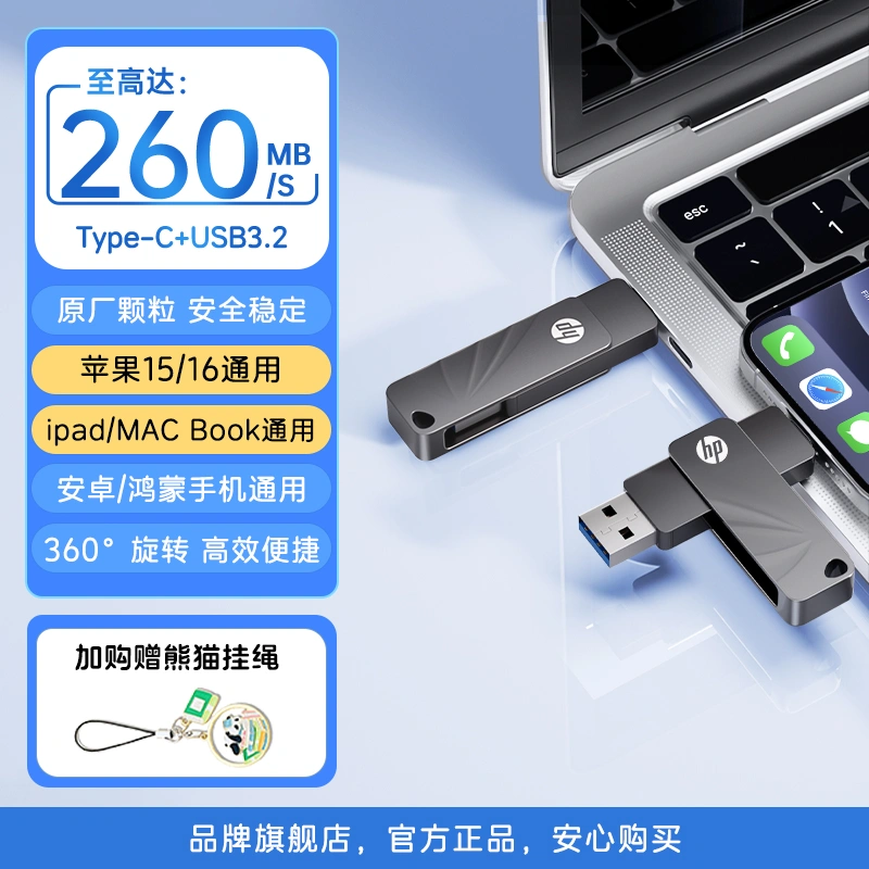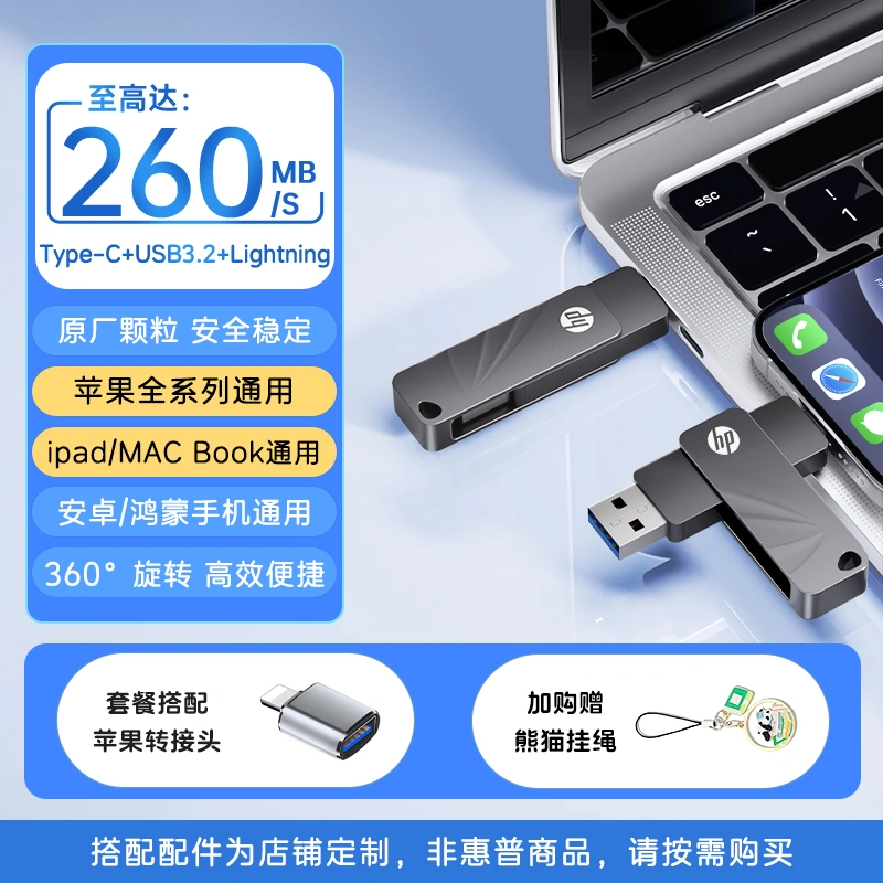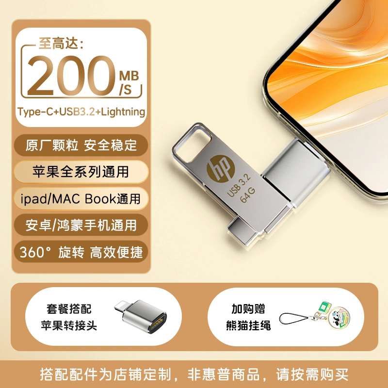 Hp Apple Mobile Phone USB Flash Drive Suitable for iPad Computers, Dual-Use iPhone 16 /17 USB Flash Drive Official Flagship Store Genuine Product