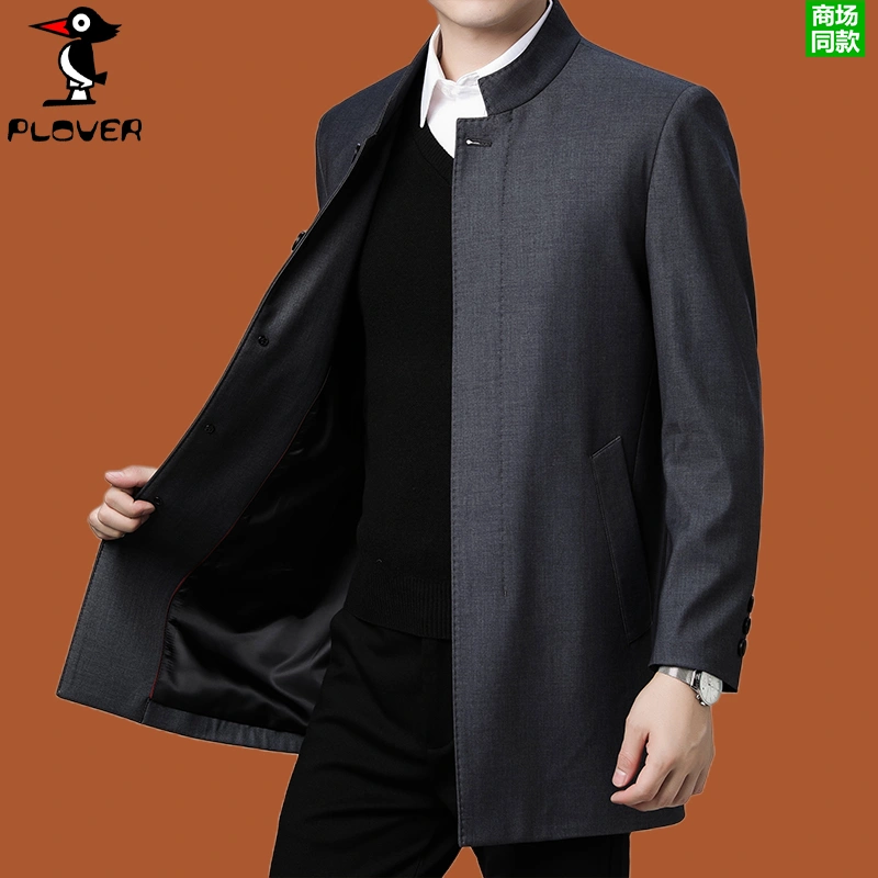 Woodpecker Stand-Collar Trench Coat for Men, Mid-Length 2025 New Style Zhongshan Suit Coat, Medieval Jacket, Executive Jacket