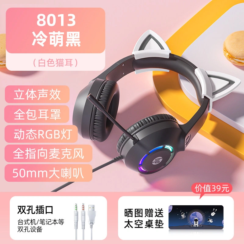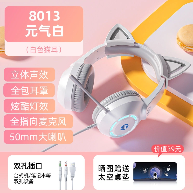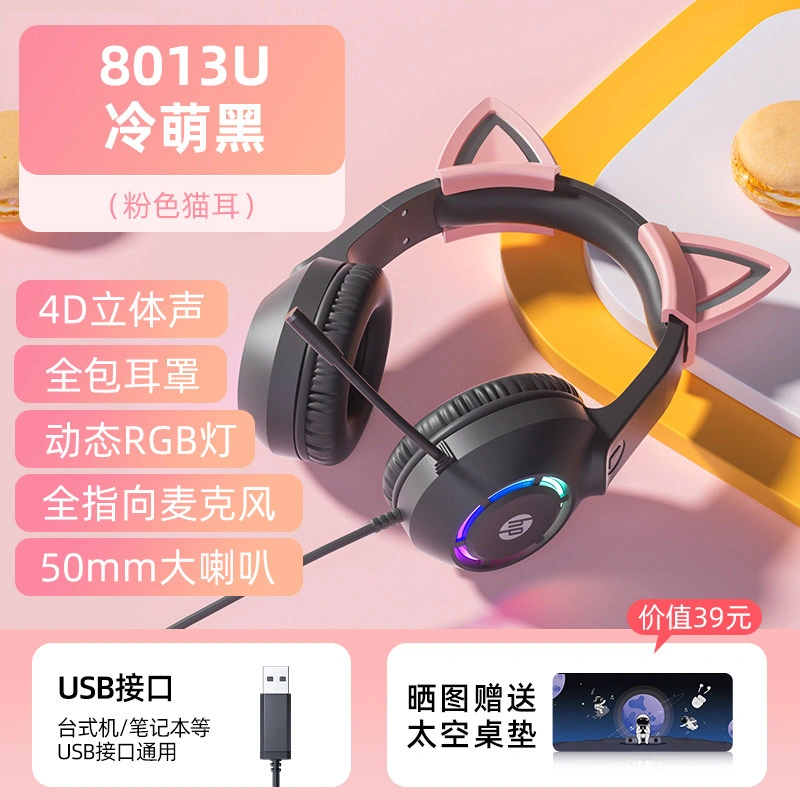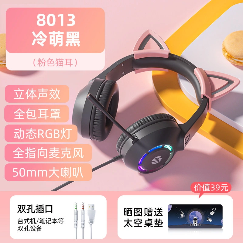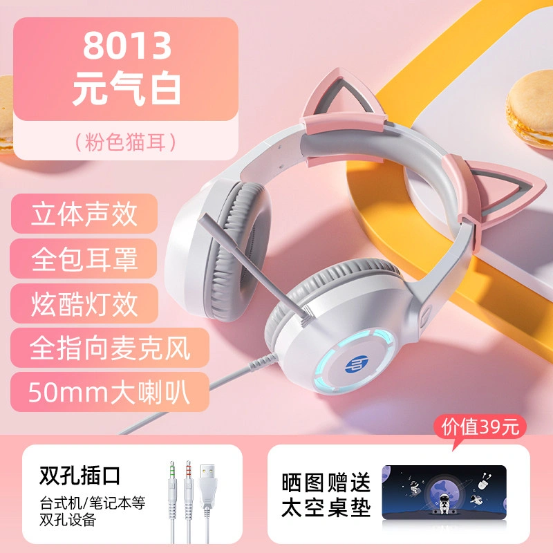 Hp Cat Ear Computer Headphones, Wired Over-Ear Gaming Headset for Girls, Desktop and Laptop Headset for Playing Pubg