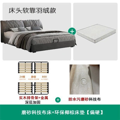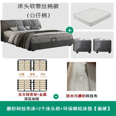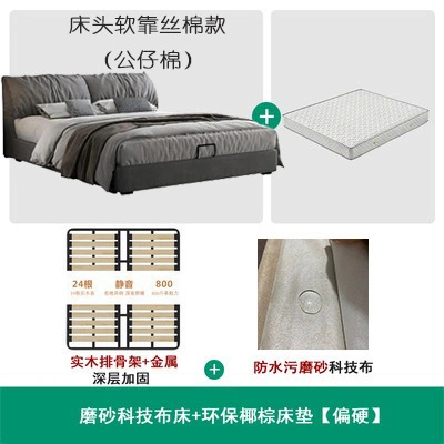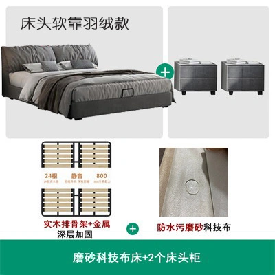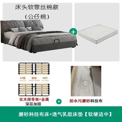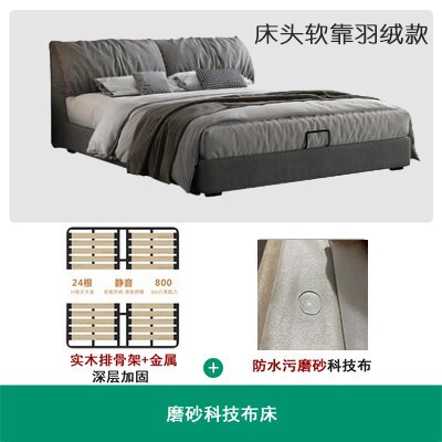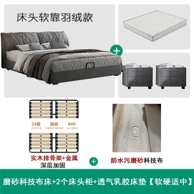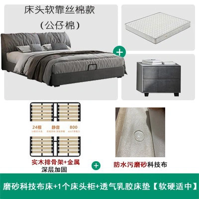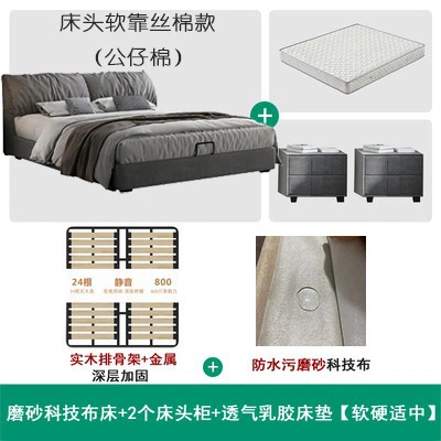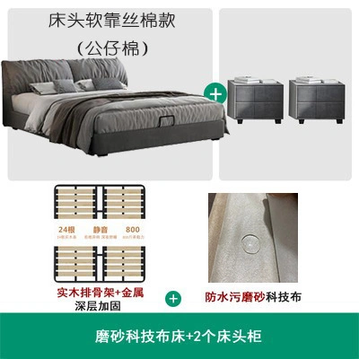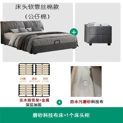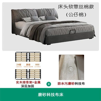 No-Wash Technology Frosted Fabric Bed Simple Modern Master Bedroom 1.8m Double Wedding Bed Elephant Ear Fabric Bed