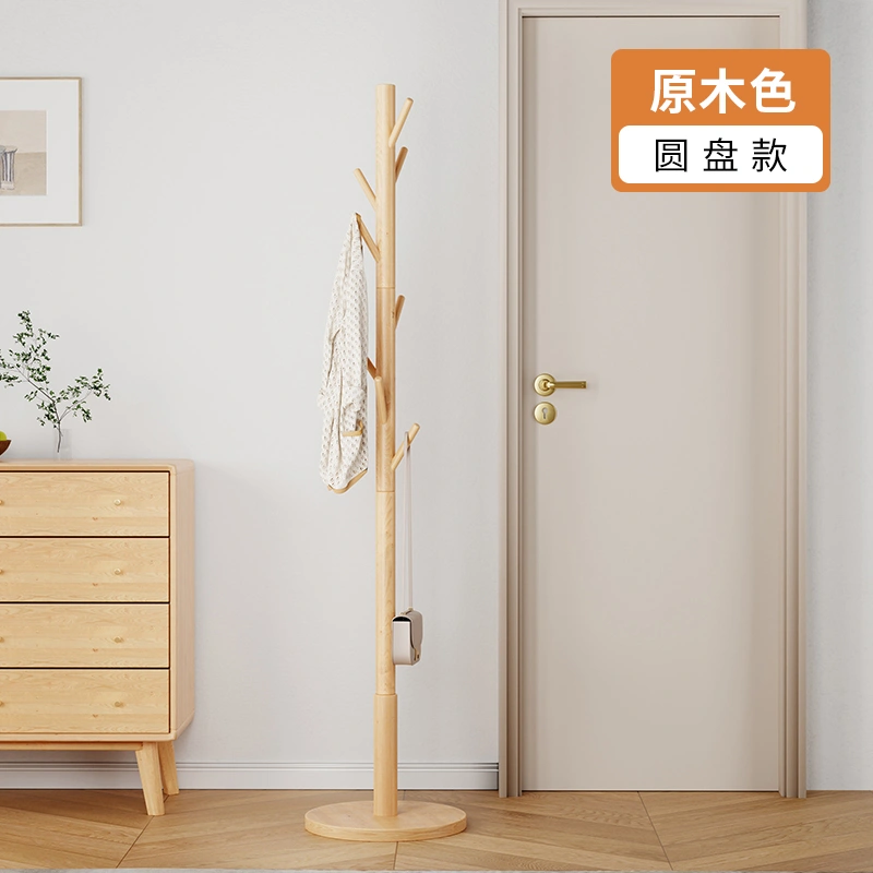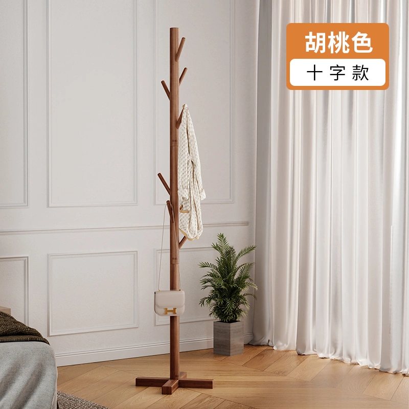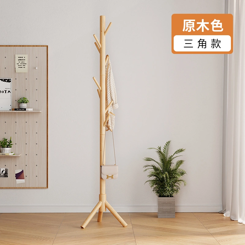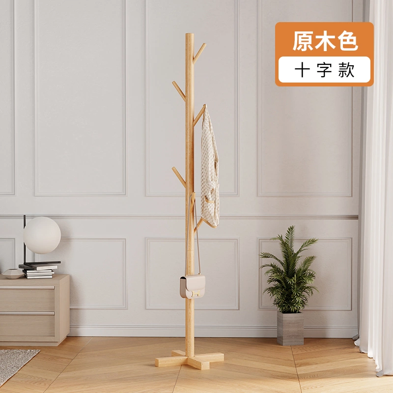 Solid Wood Clothes Rack, Floor-Standing Bedroom Household Coat Rack, Simple Vertical Clothes Hanger, Small Bag Hanging Rod