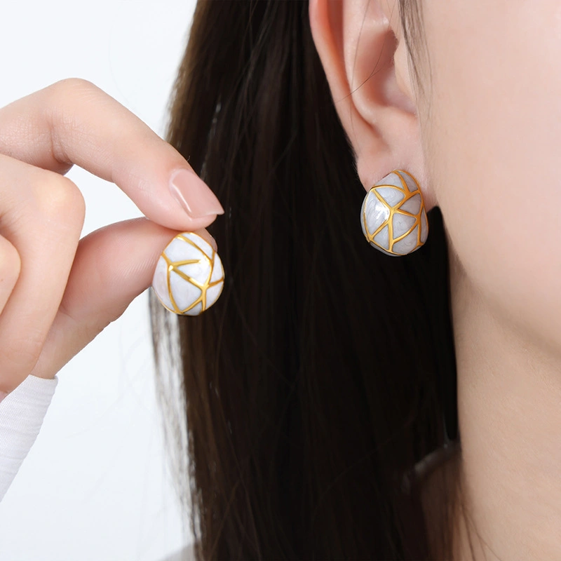 Medieval-Style British Retro Niche Personality Line Texture Weight Drop Glaze Design Titanium Steel Gold-Plated C-Shaped Earrings