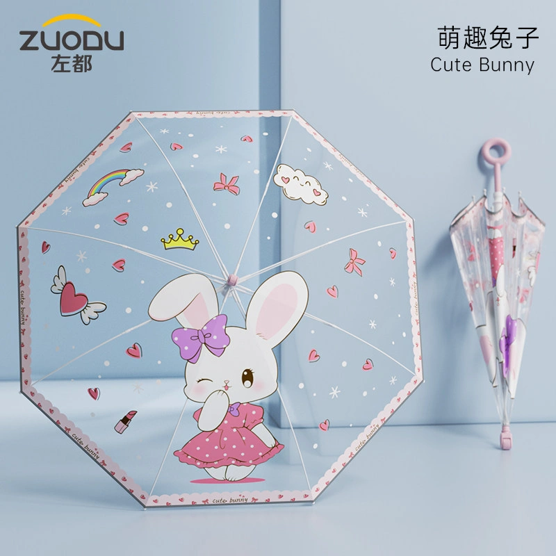 Transparent Children's Umbrella for Boys and Girls, Ultra-Lightweight, Large Size, Long Handle, Specially Designed for Elementary School Students and Kindergarten Children