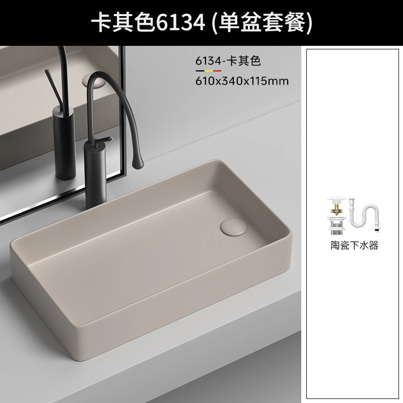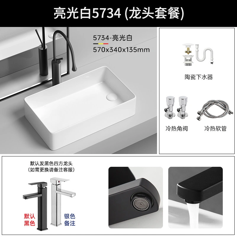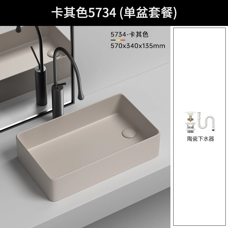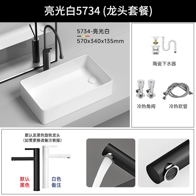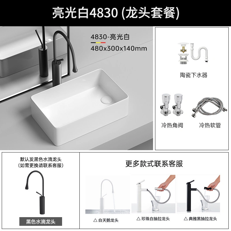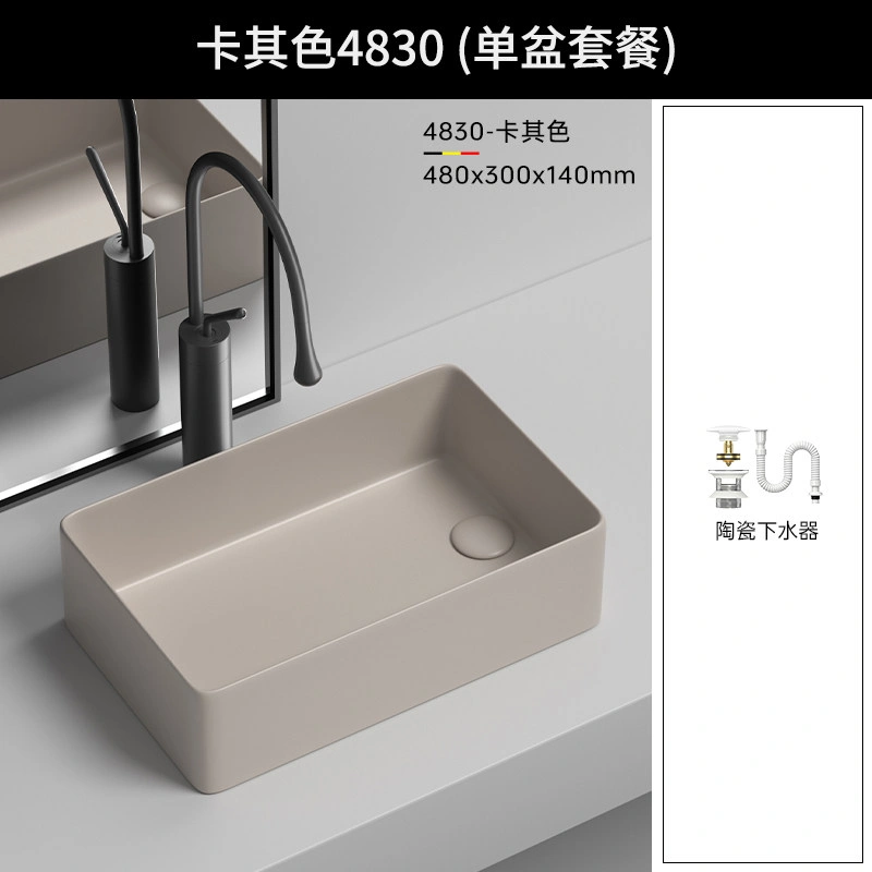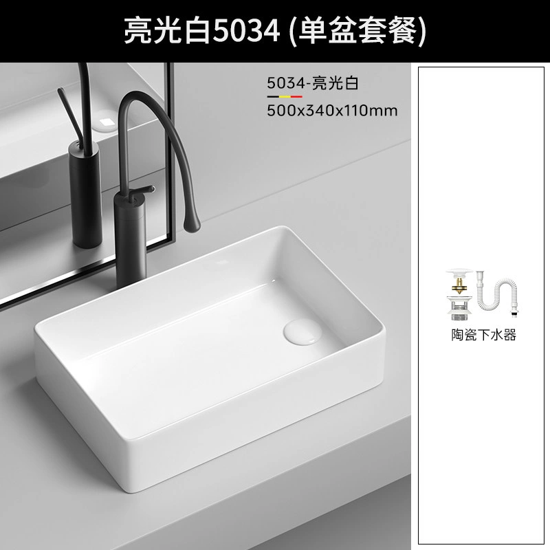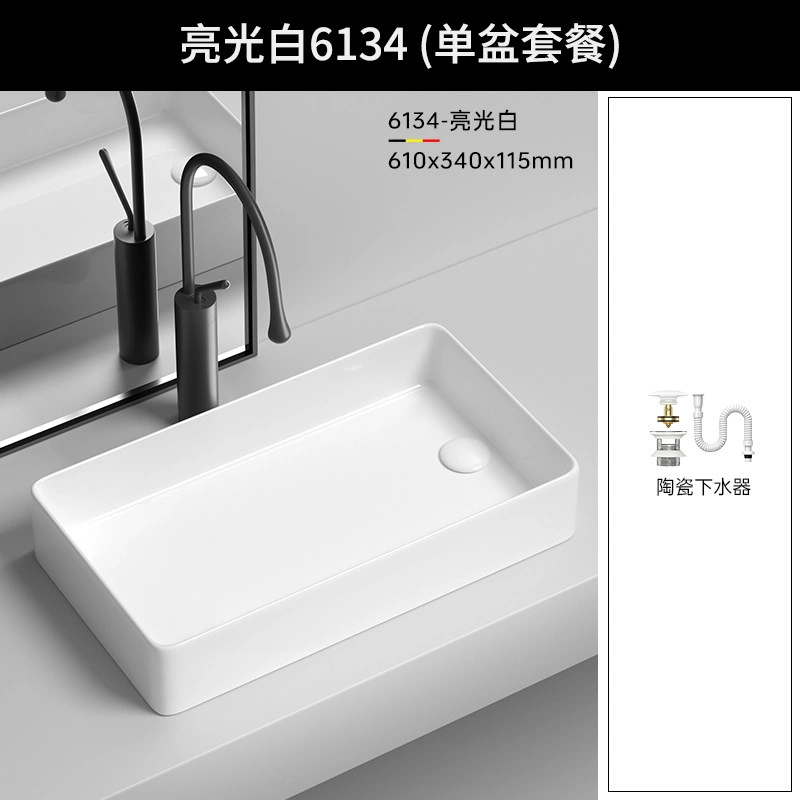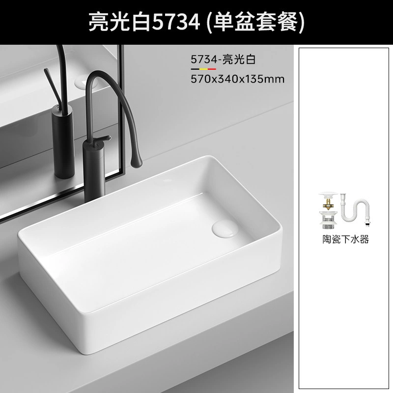 Side Drain Washing Machine Countertop Ceramic Wash Basin for Home Balcony, Left and Right Side Drainage, Square Wash Basin