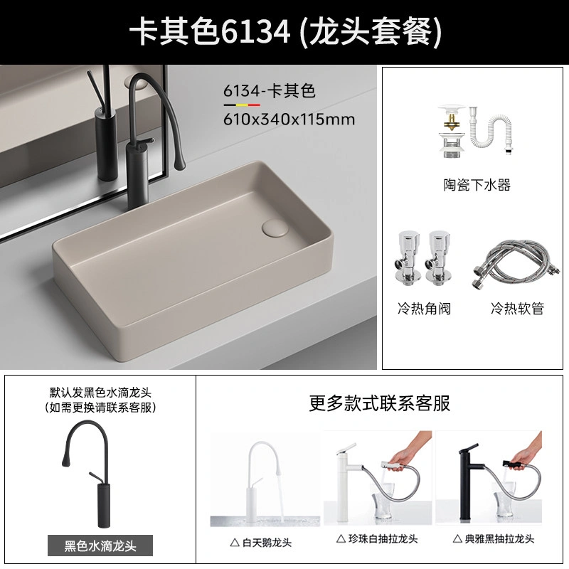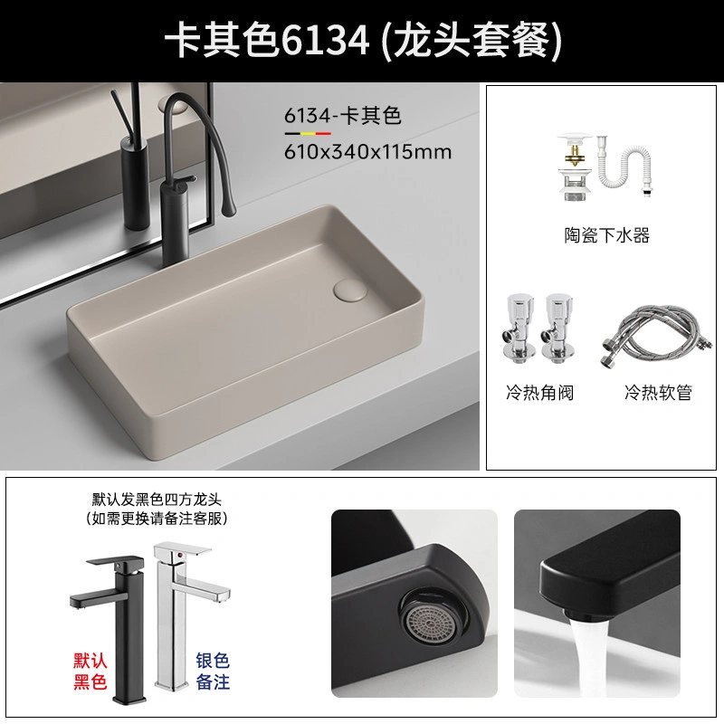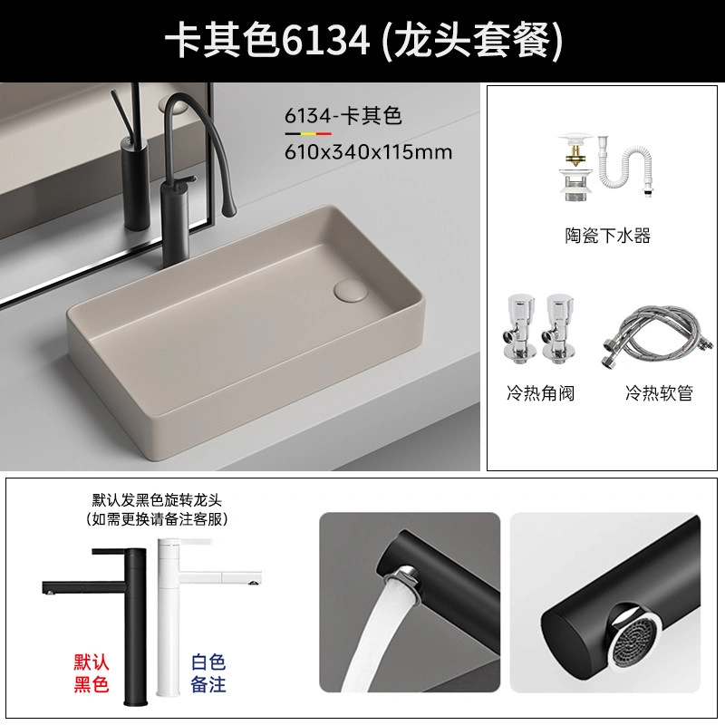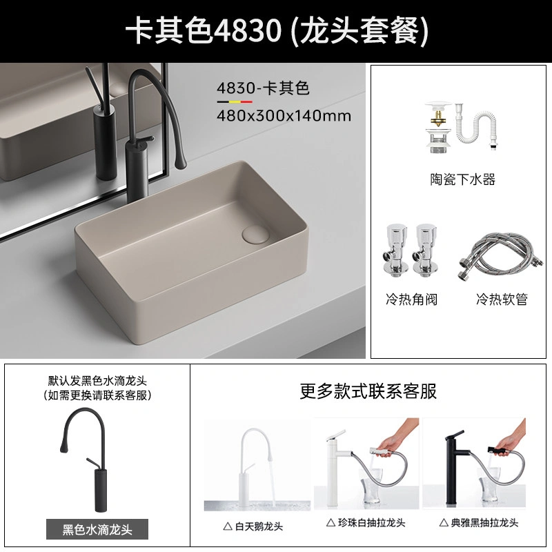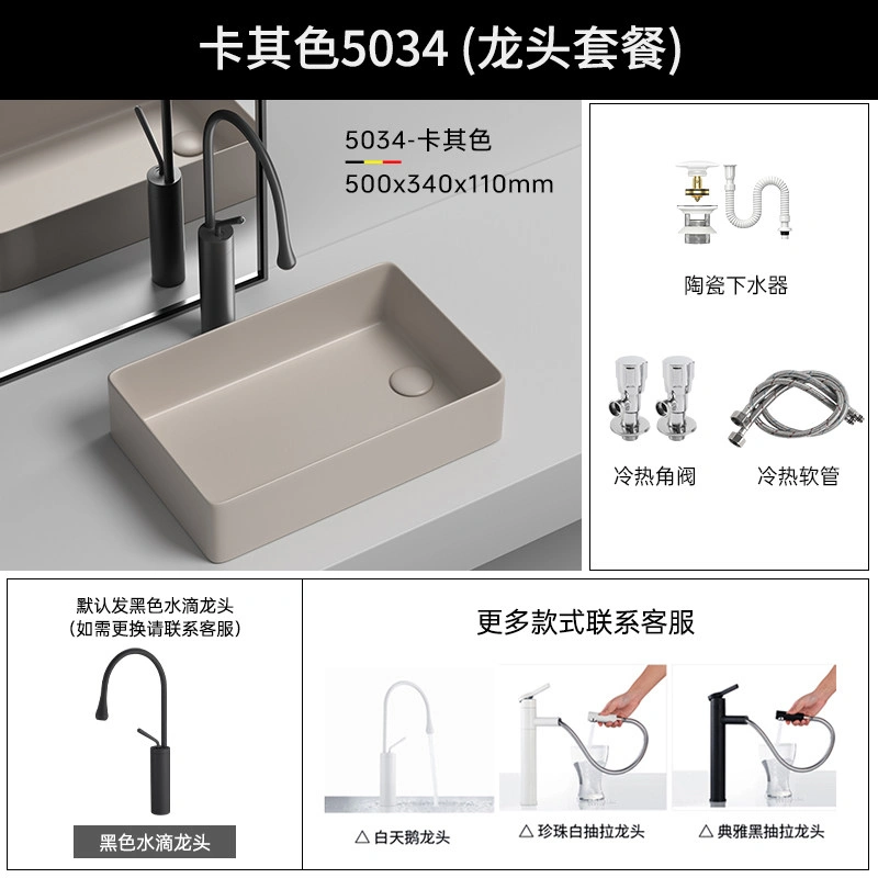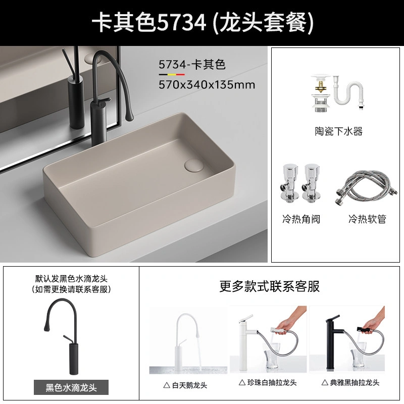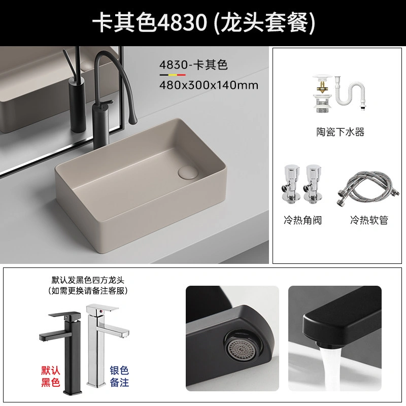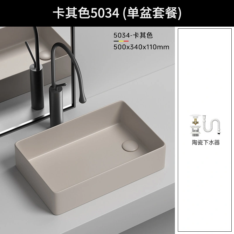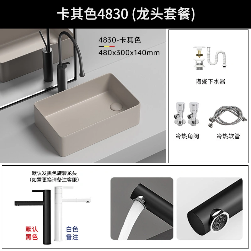 Side Drain Washing Machine Countertop Ceramic Wash Basin for Home Balcony, Left and Right Side Drainage, Square Wash Basin