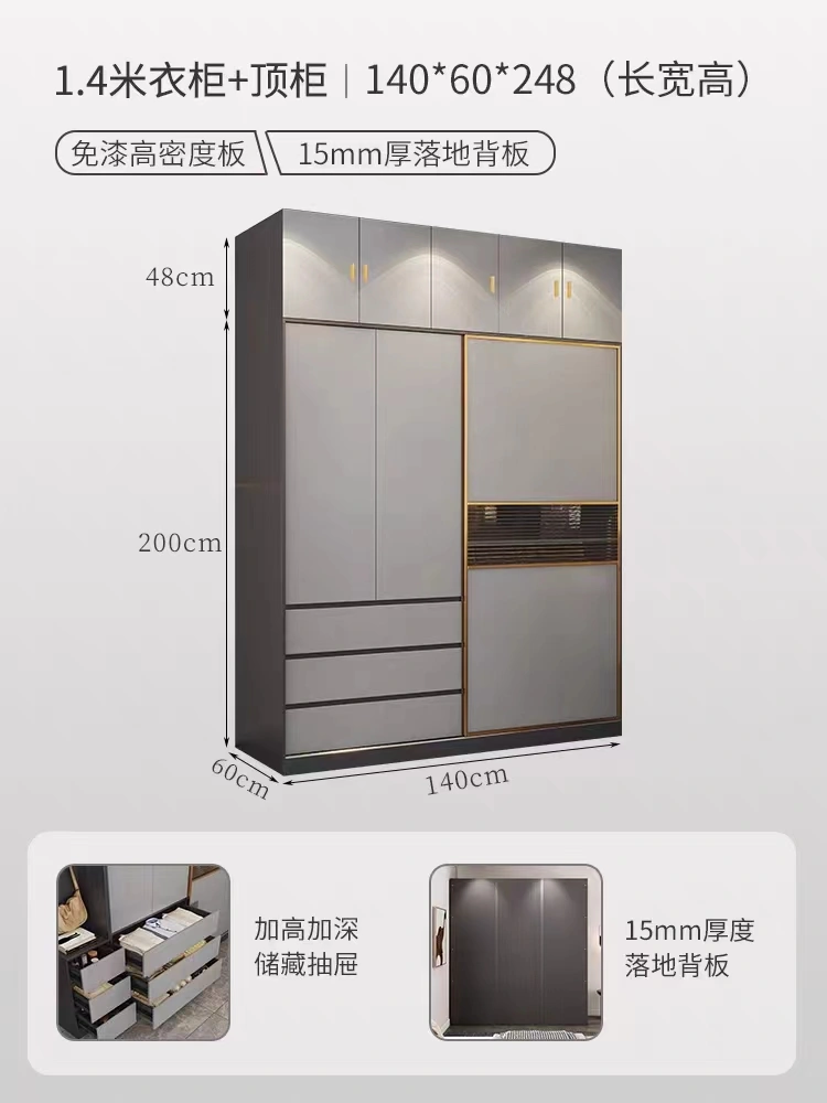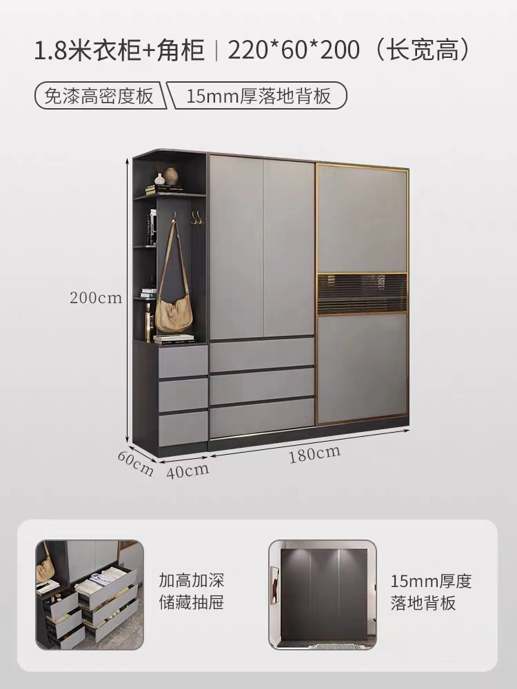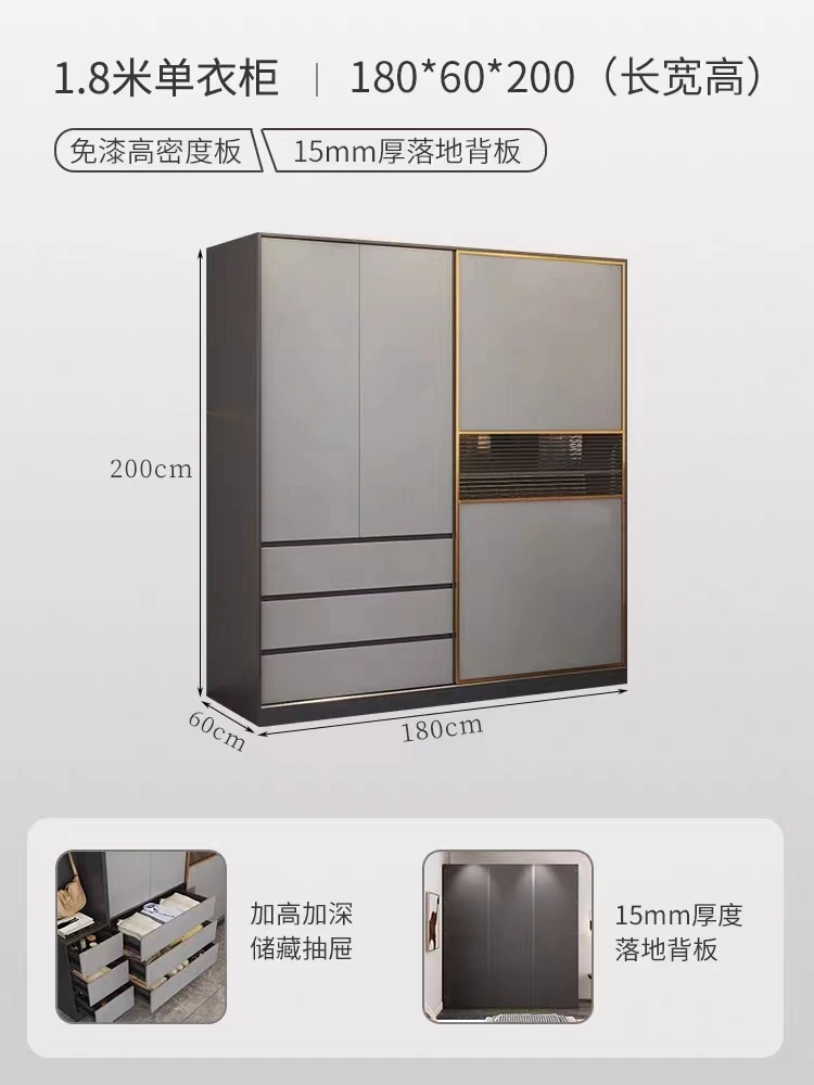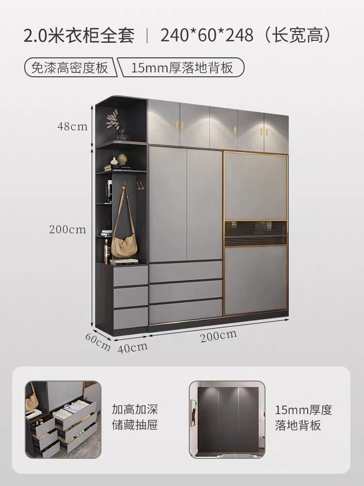 Gray Cloth Sliding Door Wardrobe Bedroom Home Sliding Door Cabinet Nordic Modern Simple Overall Sliding Door Cabinet