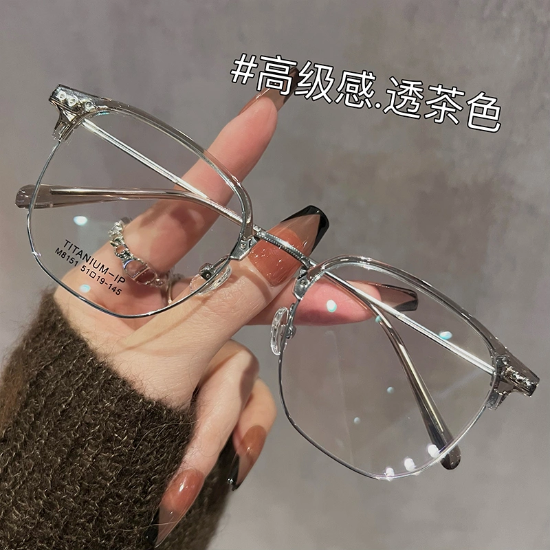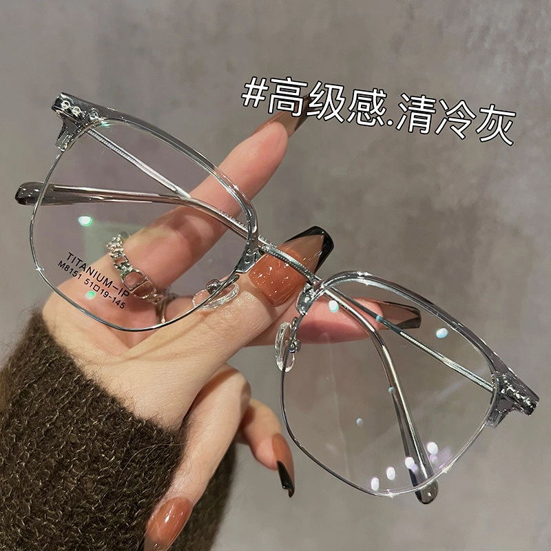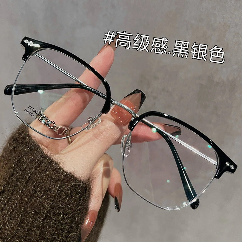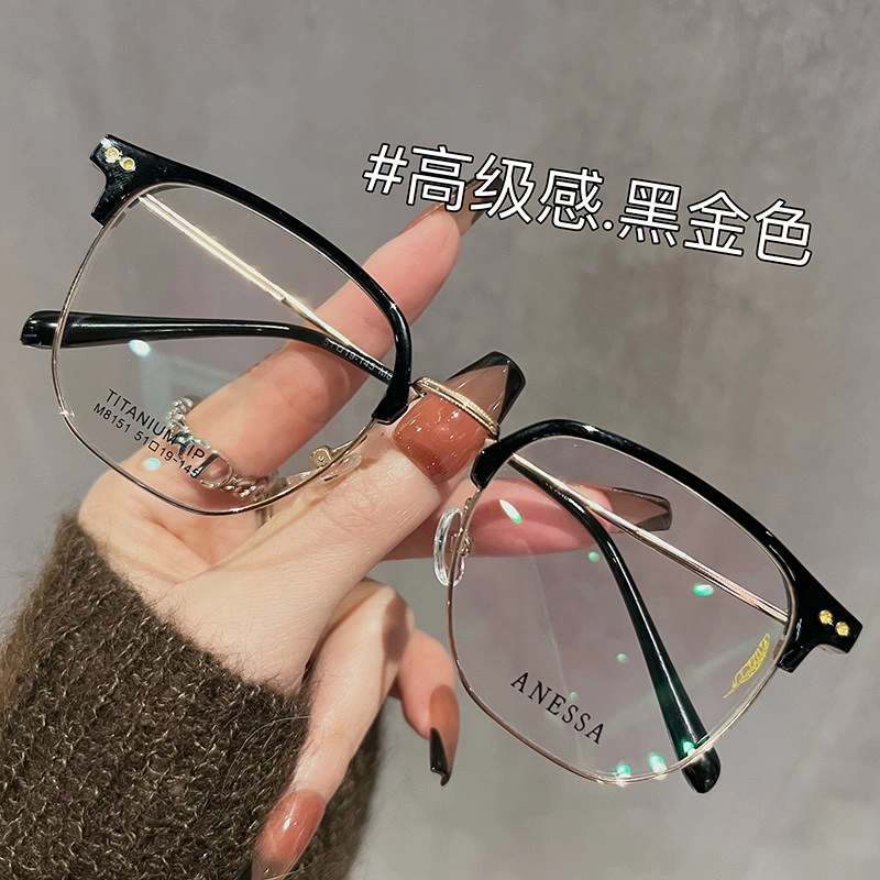 Ultra-Light Titanium Half-Frame Glasses for Women with Myopia, Can Be Fitted with Prescription Lenses, Large Frame for Men, Makes Face Look Smaller, Eyeglass Frame for Big Face, Makes Face Look Slimmer