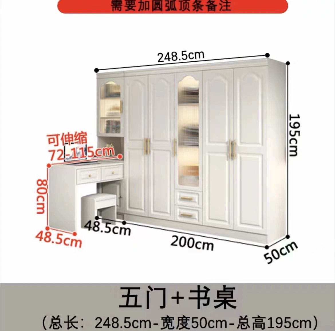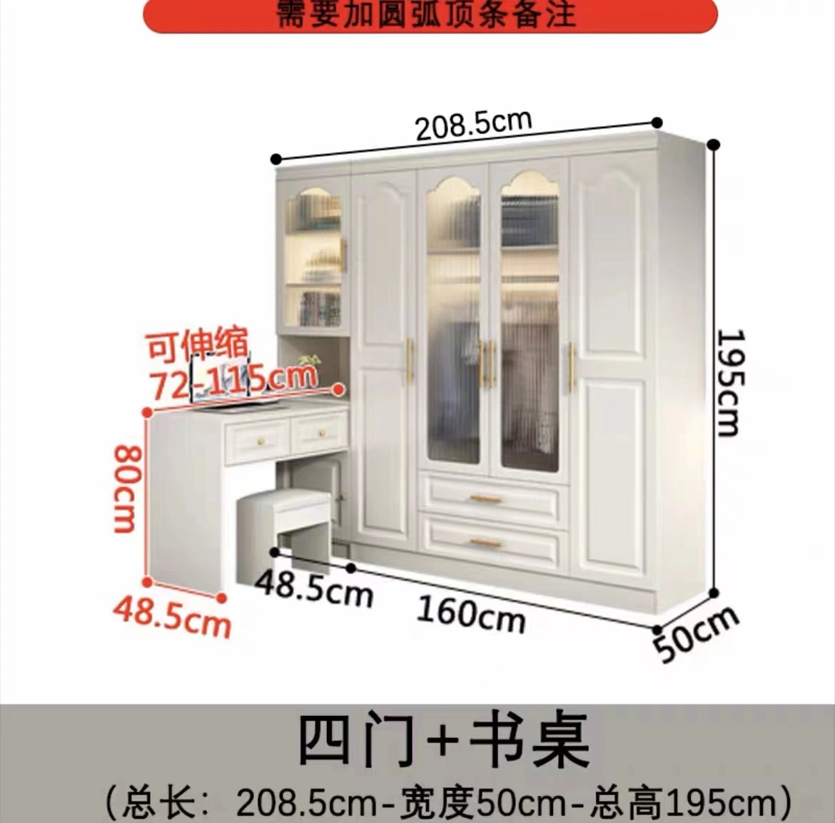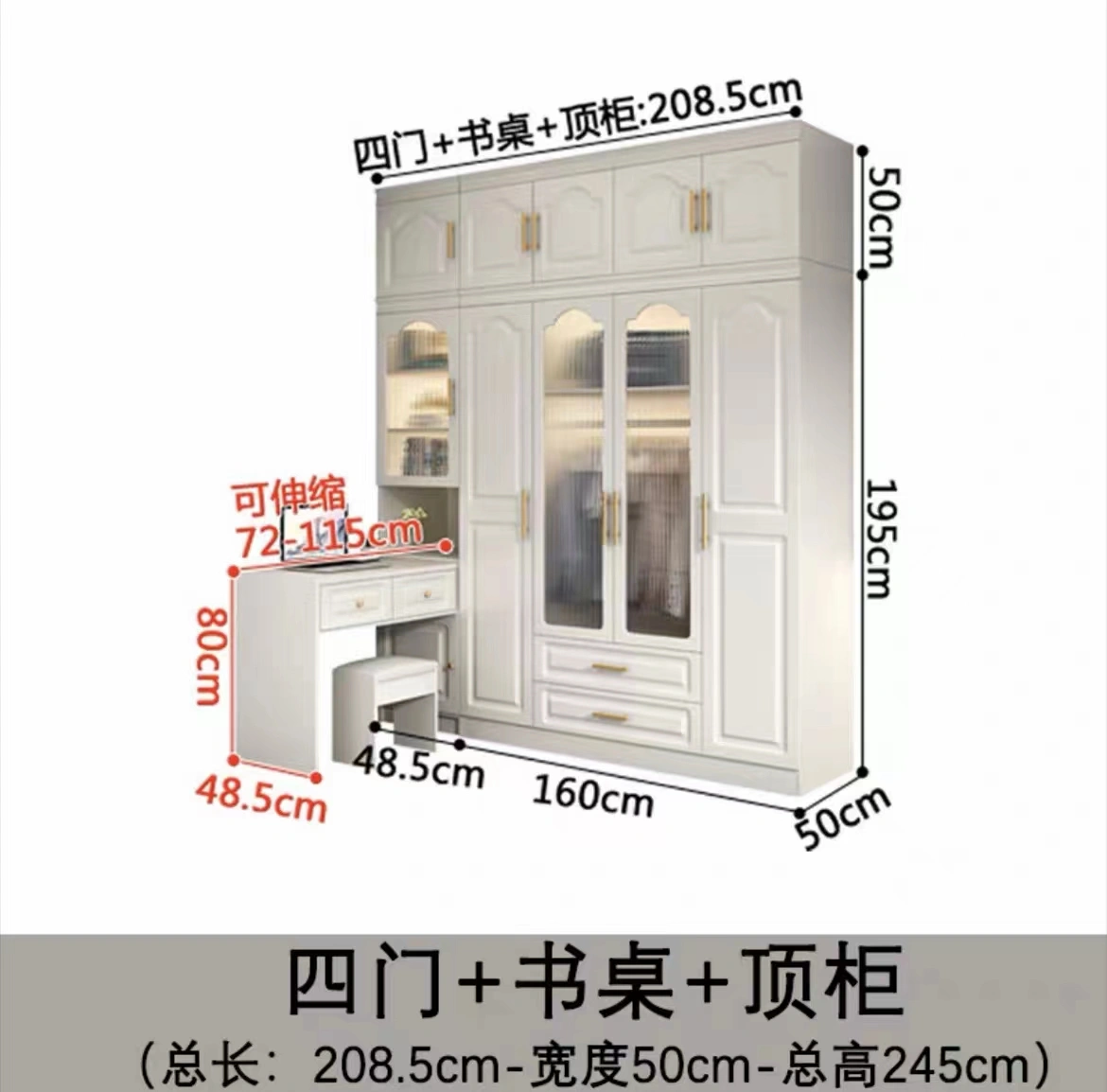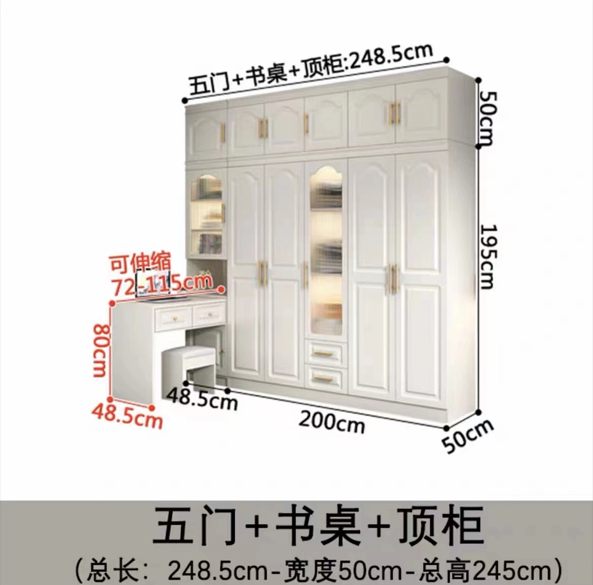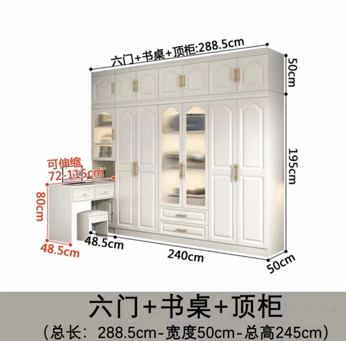 Wardrobe Desk Integrated Simple Modern Household Economical Cabinet Small Apartment Writing Desk Bookshelf Combination Large Wardrobe