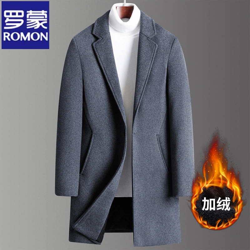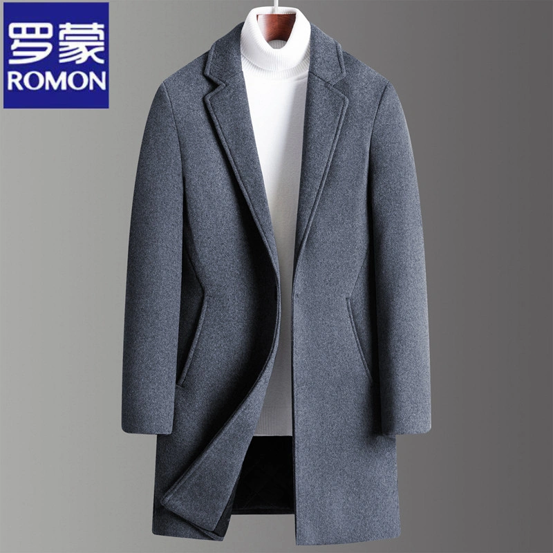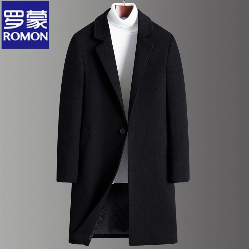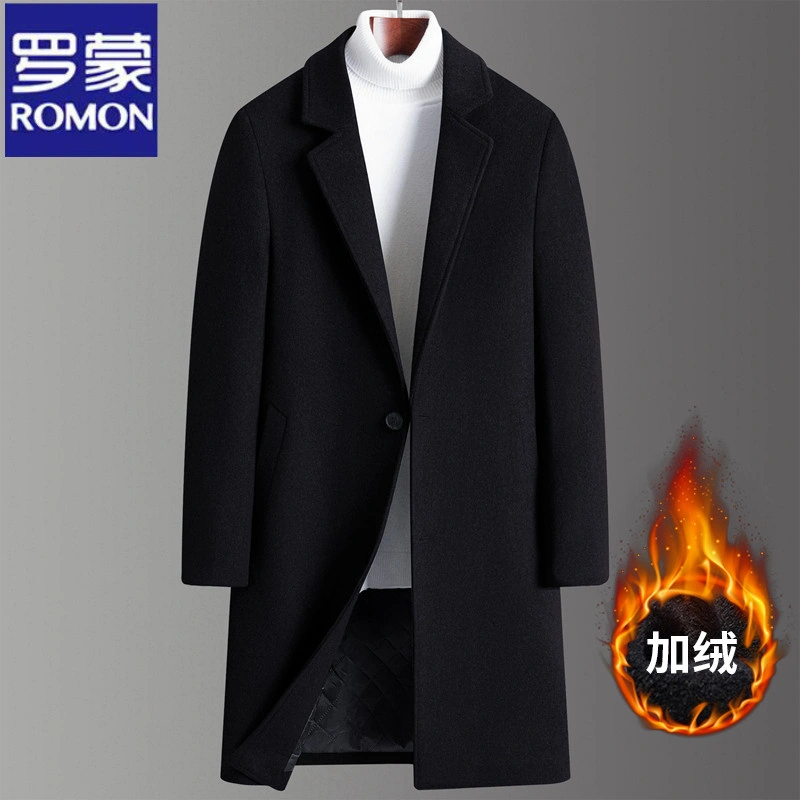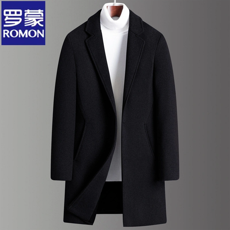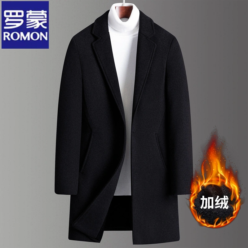 Romon Woolen Coat for Men, New Autumn and Winter Woolen Overcoat, Mid-Length Thickened Cashmere Stylish Trench Coat