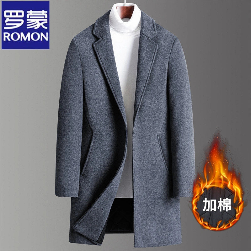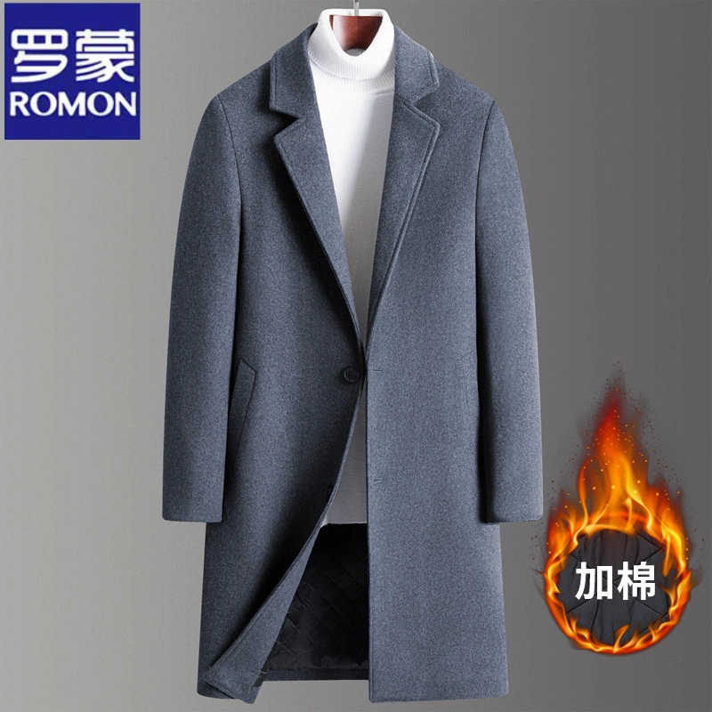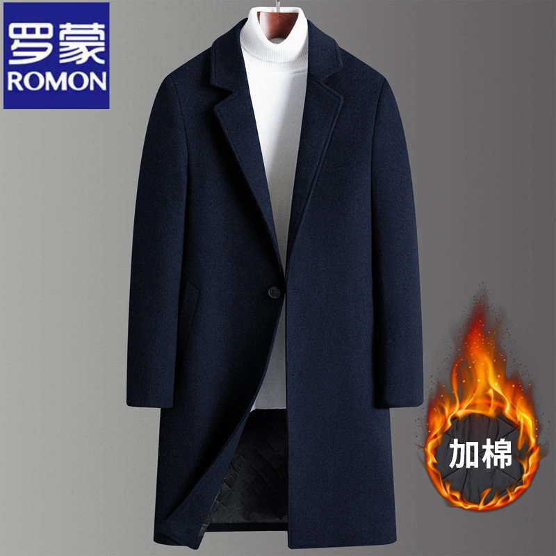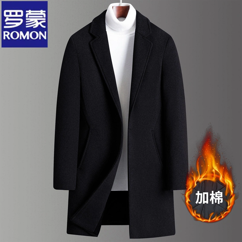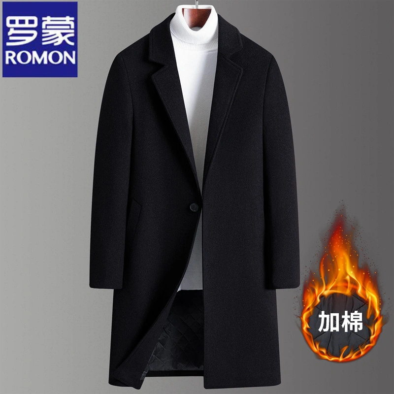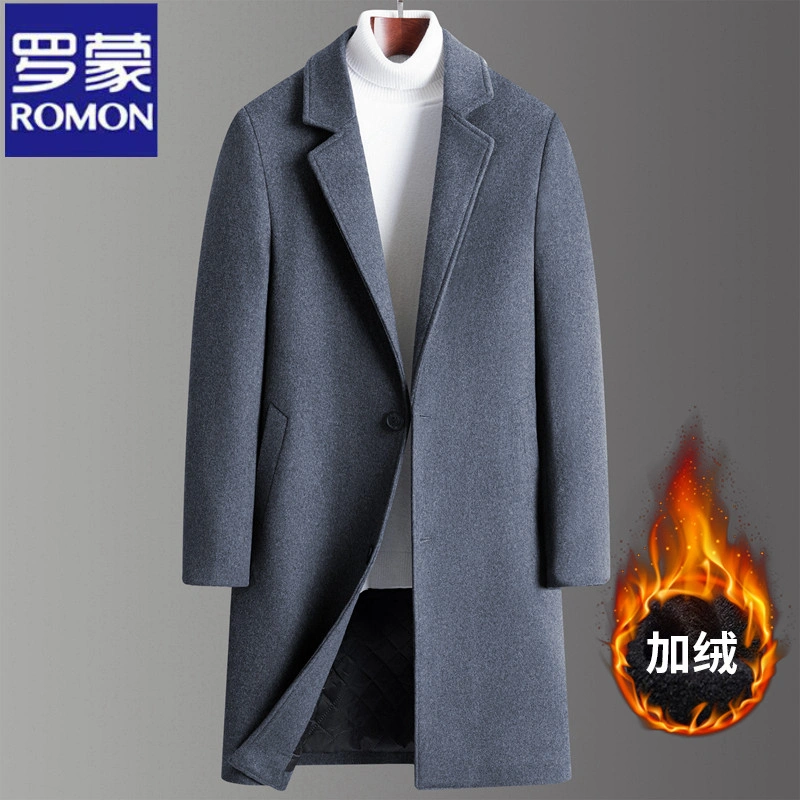 Romon Woolen Coat for Men, New Autumn and Winter Woolen Overcoat, Mid-Length Thickened Cashmere Stylish Trench Coat