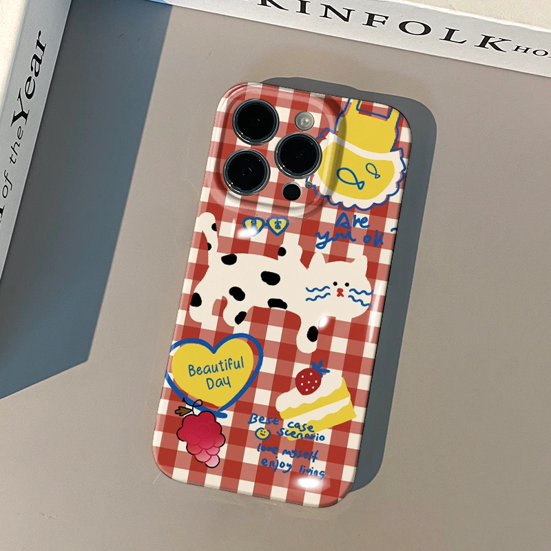 Ins Creative Niche Cute Plaid White Cat Suitable for Huawei Film Oppo Case Apple 15 New Iphone14/13/12Promax Phone Case Realme Redmi Xiaomi 13Pro/Ultra