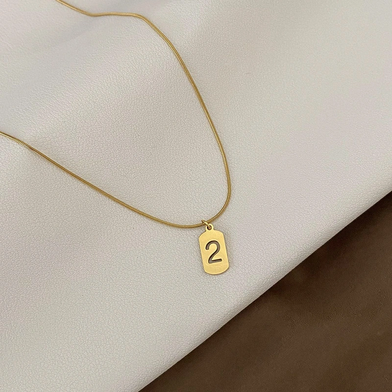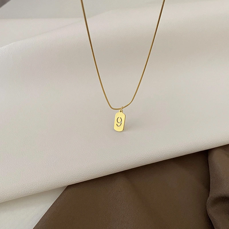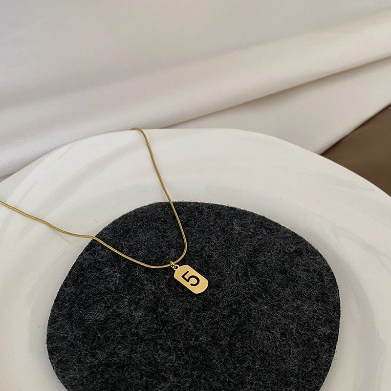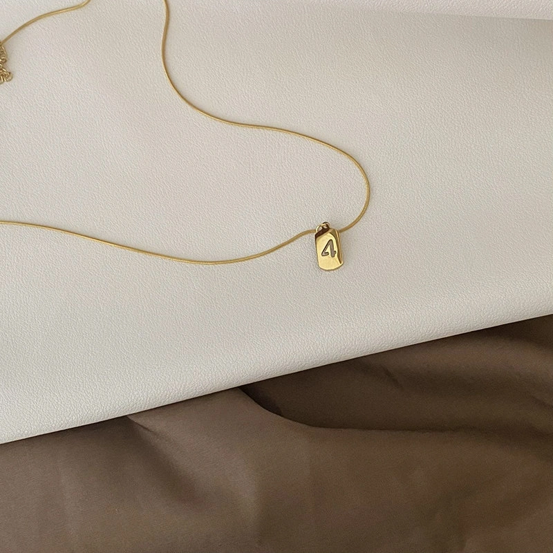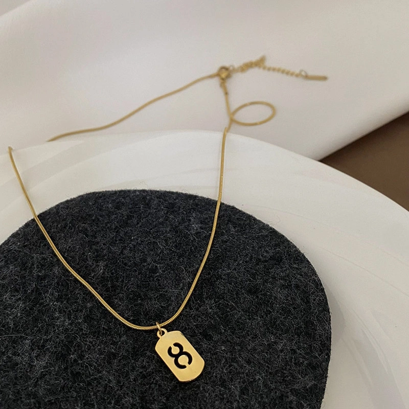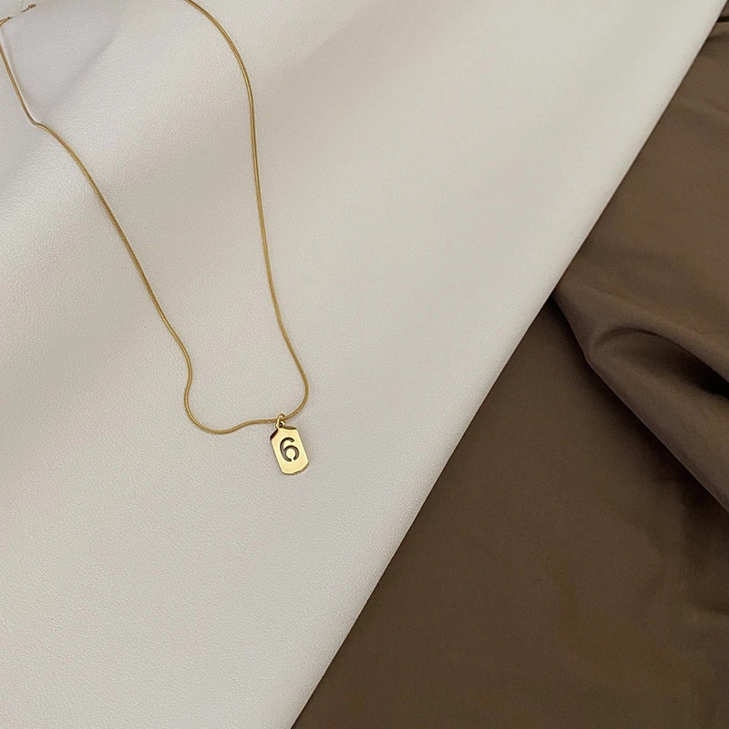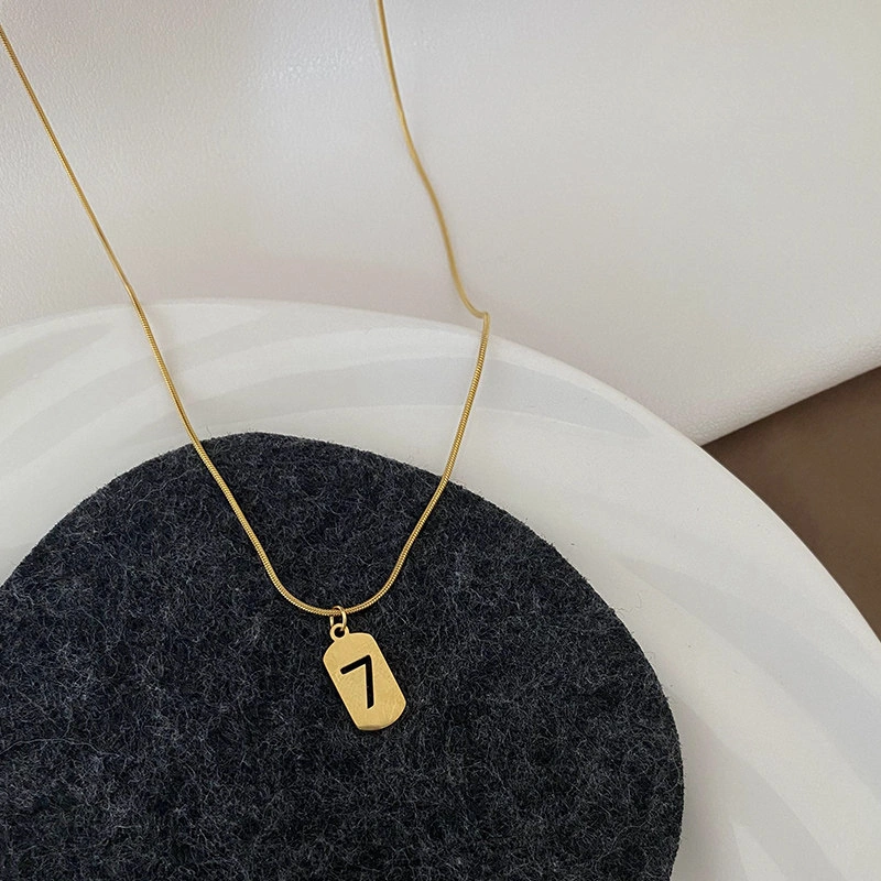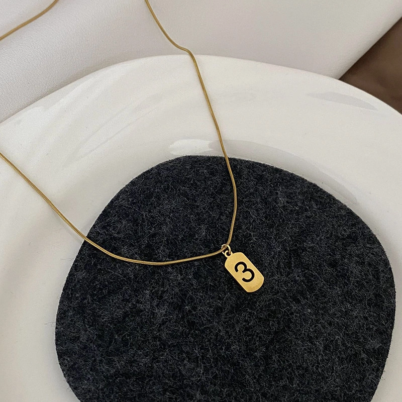 Lucky Fortune Card Number Necklace Titanium Steel Non-Fading Light Luxury Style Gold Vintage Exquisite Snake Bone Chain ins