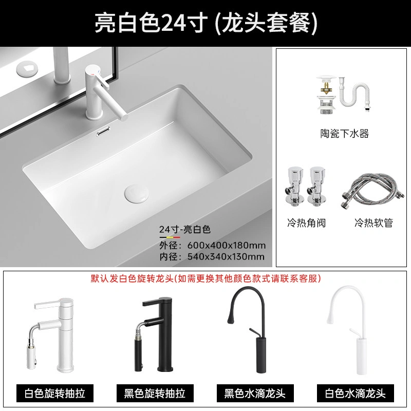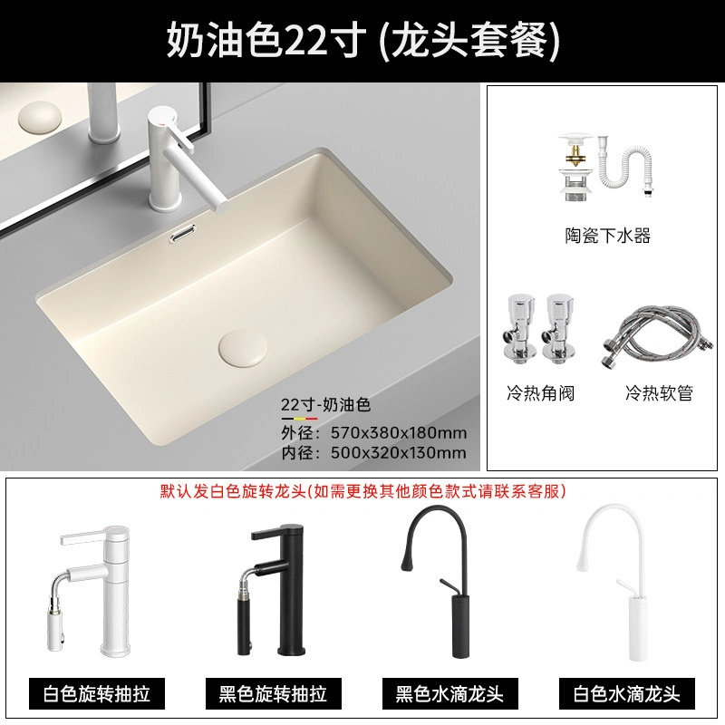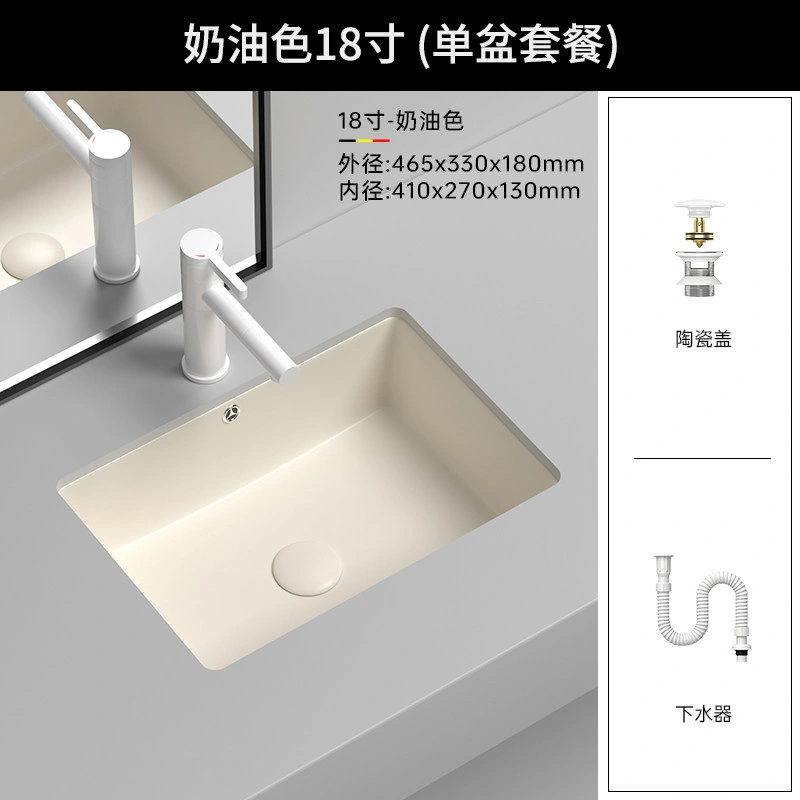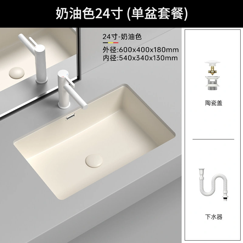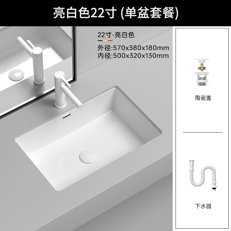 Flat Bottom Square Ceramic Under-Counter Basin Embedded Household Wash Basin Single Basin Bathroom Balcony Wash Basin Under-Counter Basin