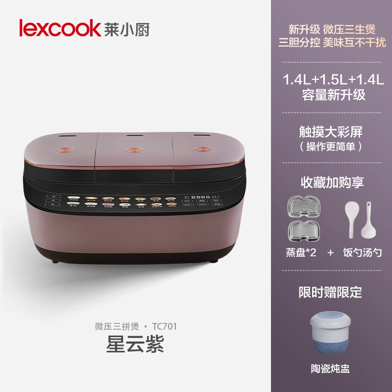 Lexcook Three-In-One Rice Cooker, Three Pots, Household Smart Cooker for Soup and Rice, Multifunctional Electric Cooker