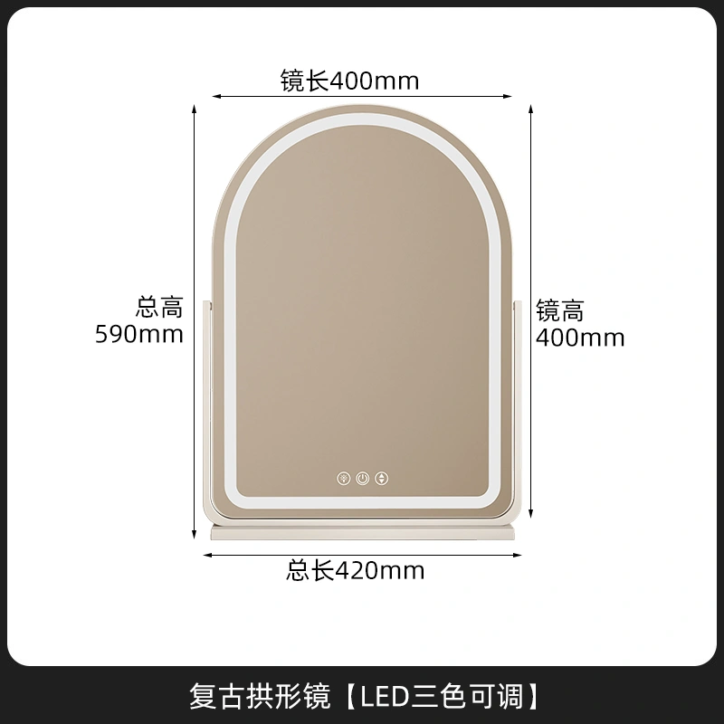 American-Style Dressing Mirror, French Retro Makeup Mirror, Desktop Fill Light, Master Bedroom Dressing Table, Large Arched Mirror